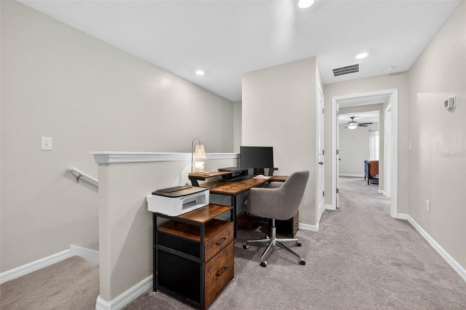 Nestled within the beautiful and highly sought-after South Creek community, this quality-built townhome by Lennar Homes offers a refined blend of space, style, and serene surroundings. Perfectly positioned as an end unit, the residence enjoys enhanced privacy, abundant natural light, and tranquil views with no rear neighbors, creating an exceptional living experience in a picturesque setting. Spanning 1,642 square feet of thoughtfully designed living space, this townhome features two bedrooms, two and a half baths, and a one-car garage, all crafted to support both everyday comfort and effortless entertaining. The open-concept main level is anchored by durable and elegant ceramic tile flooring, providing a seamless flow between the living, dining, and kitchen areas. Large windows fill the space with sunlight, enhancing the airy feel and highlighting the home’s inviting atmosphere. A remodeled half bath on the main level adds a modern touch, ideal for guests. The kitchen opens beautifully to the main living areas, making it perfect for hosting or relaxing evenings at home. Sliding doors lead to a covered patio overlooking a peaceful wooded area, offering a private outdoor retreat where you can unwind while enjoying nature’s backdrop. Upstairs, the home continues to impress with brand-new carpeted stairs and a versatile second-level loft/flex space, ideal for a home office or reading nook. The primary suite is generously sized and designed as a private sanctuary, featuring a walk-in closet and a private ensuite bath. The second bedroom is equally impressive, complete with its own walk-in closet and private ensuite, making it perfect for guests or shared living arrangements. A second-level laundry room adds everyday convenience and functionality. The spacious garage provides ample room for parking and storage, enhanced by an installed storage rack to keep everything organized. Residents of South Creek enjoy access to resort-style community amenities, including a large swimming pool, dog park, and playground, fostering an active and welcoming neighborhood lifestyle. The location is equally appealing—centrally located with dining, shopping, and daily conveniences just minutes away, along with easy access to I-75 and Big Bend Road for effortless commuting. Tampa International Airport is approximately 35 minutes away, making travel simple and convenient. This exceptional townhome offers privacy, thoughtful design, and community charm in one of the area’s most desirable settings—an ideal opportunity for those seeking comfort, convenience, and a refined lifestyle. Welcome home!