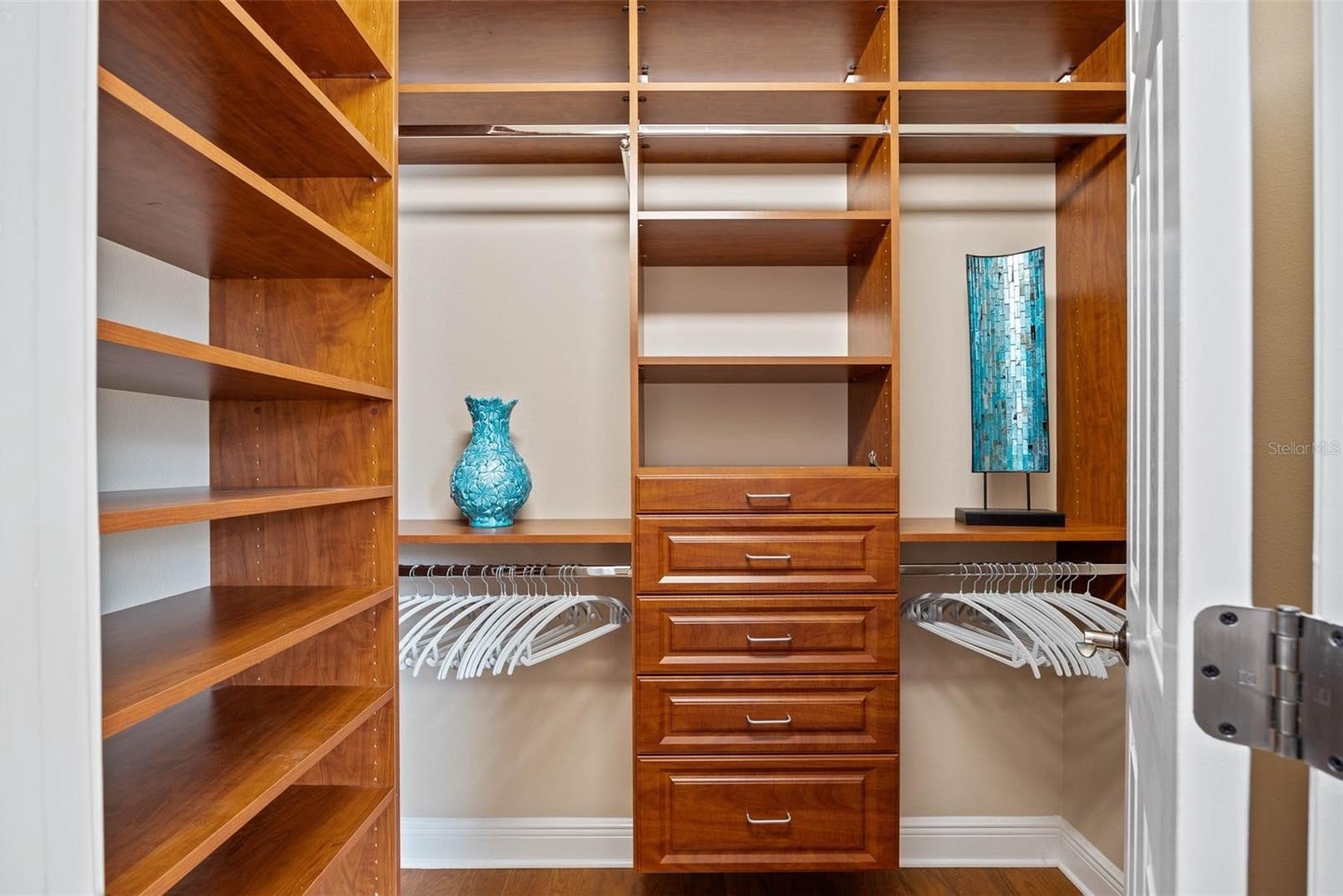 The generously sized primary suite is a true sanctuary, featuring two walk-in closets, and direct access to the pool and lanai. The en-suite bath includes dual vanities, a soaking tub, walk-in shower, and private water closet, while the adjoining fitness room adds a unique and convenient amenity rarely found. Three additional bedrooms, all well-sized with walk-in closets, are arranged in a desirable triple-split floor plan to provide privacy for family or guests.