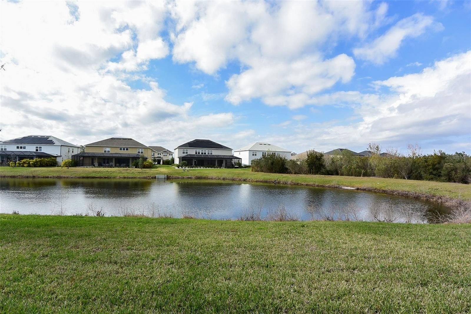One or more photo(s) has been virtually staged. Located in the desirable gated Watergrass community of Wesley Chapel, this stunning waterfront four-bedroom, three-and-a-half-bath home with a three-car garage offers the perfect blend of space, style, and serene surroundings. Situated on a tranquil pond with beautiful water views, the home features a welcoming covered front porch and a spacious screened rear porch ideal for enjoying Florida living year-round. Inside, you’ll be greeted by high ceilings and a popular great room floor plan that flows seamlessly for everyday living and entertaining. The home includes a formal dining room, a dedicated flex room perfect for a home office or playroom, and a separate den providing additional living space or a quiet retreat. The split-bedroom layout offers privacy, and the inside utility room adds everyday convenience. The expansive primary suite is a true retreat, featuring a gorgeous bathroom and abundant closet space. Additional highlights include zoned HVAC heat pumps and solar panels for enhanced energy efficiency. Residents enjoy resort-style amenities within the Watergrass community, including a clubhouse, community pool, parks, fitness center, and gated access for added privacy and security. Conveniently located near excellent schools, world-class shopping and dining at Tampa Premium Outlets and Wiregrass Mall, and just minutes from I-75 and the SR-54 corridor, making travel throughout the Tampa Bay area a breeze. Waterfront homes in this community are in high demand and rarely available at this price. Schedule your showing today before it’s gone. This property may qualify for Seller Financing (Vendee).