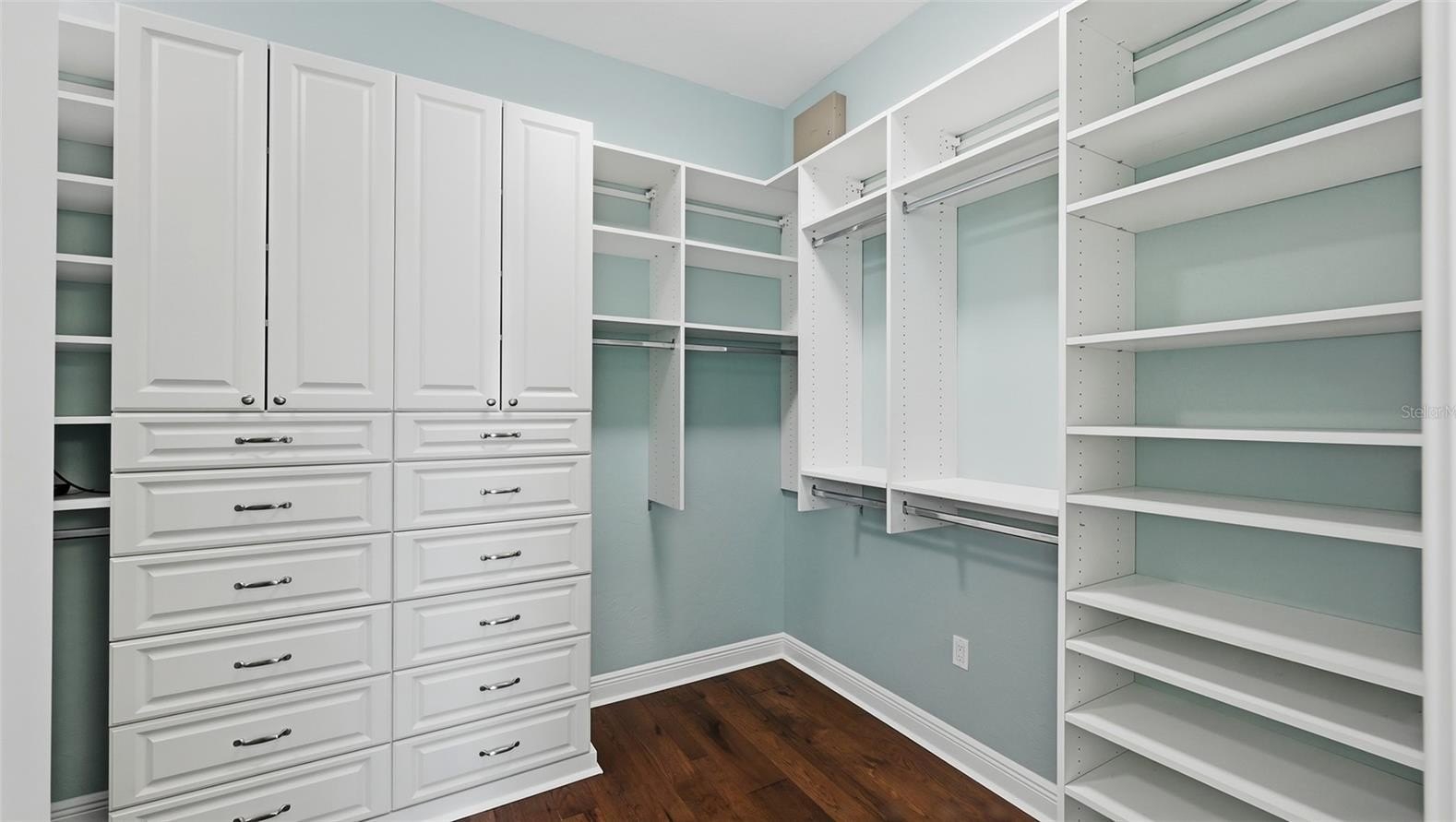 The owner’s suite is a private retreat with serene water views, a spa inspired bath with a soaking tub and walk in shower, and an expansive custom closet. The den provides flexible space for an office, media room, OR quiet lounge.