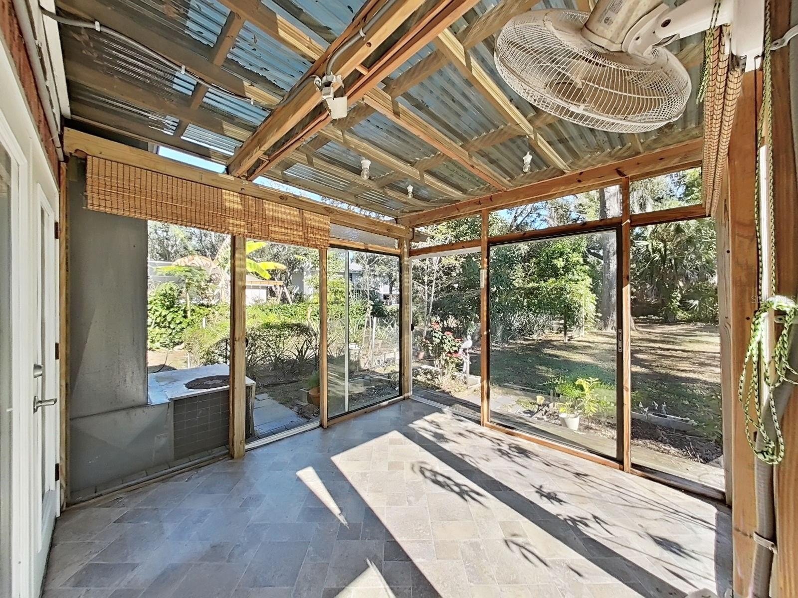 The main home features a split floor plan with spacious, open living areas ideal for everyday living and entertaining. You’ll appreciate the character throughout, including a brick fireplace with built-in bookshelves and wood-beamed vaulted ceilings. The expansive covered, screened lanai overlooking the pool creates a comfortable flow between indoor and outdoor spaces.