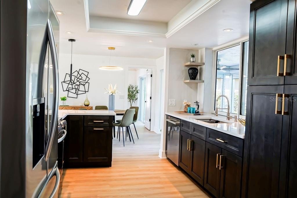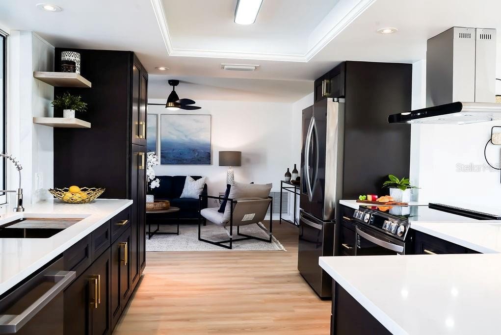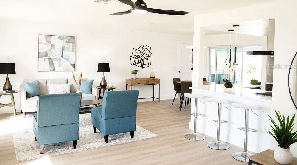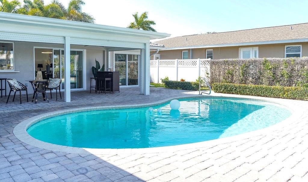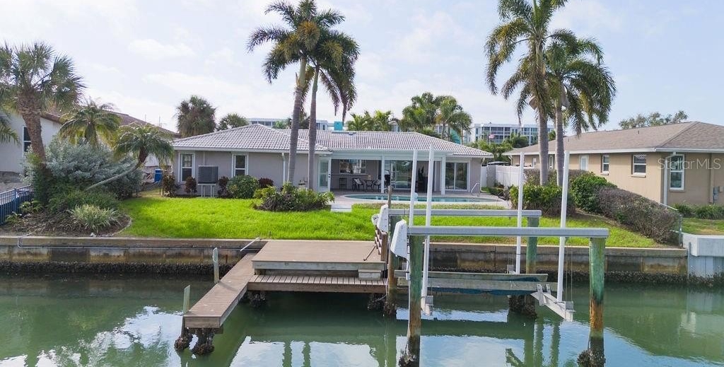 Experience refined waterfront living in this fully reimagined residence located in the coveted Maximo Moorings of St. Petersburg’s Skyway Marina District. Perfectly positioned on a tranquil canal with direct access to open water, this exceptional 3-bedroom, 2-bath home offers a private boat dock with lift, a resort-style pool, and an expansive paver patio designed for effortless indoor-outdoor living. The thoughtfully redesigned interior showcases an open, flowing floor plan that seamlessly connects the living room, dining room, family room, and kitchen—ideal for both refined entertaining and relaxed coastal living. At the heart of the home, the chef-inspired kitchen impresses with new quartz countertops, new rich wood cabinetry, premium new appliances, a breakfast bar, an oversized pantry closet, and a pass-through window to the patio for seamless alfresco dining. Every detail has been elevated with new baths, new flooring, new doors, extensive upgrades throughout, and lush new landscaping. A new A/C system (2025) and new washer and dryer provide modern efficiency and peace of mind. The desirable split-bedroom layout offers privacy and tranquility. The elegant primary suite features a walk-in closet, spa-like en suite bath, and sliding glass doors opening directly to the pool and patio. Two generously sized guest bedrooms provide ample closet space, while the beautifully appointed guest bath doubles as a convenient pool bath. Both the dining room and family room open to the outdoor living area through sliding doors, enhancing the home’s seamless connection to its waterfront setting. Whether lounging poolside, entertaining under the stars, or cruising directly to open water from your backyard, this extraordinary home captures the essence of luxury Florida waterfront living.