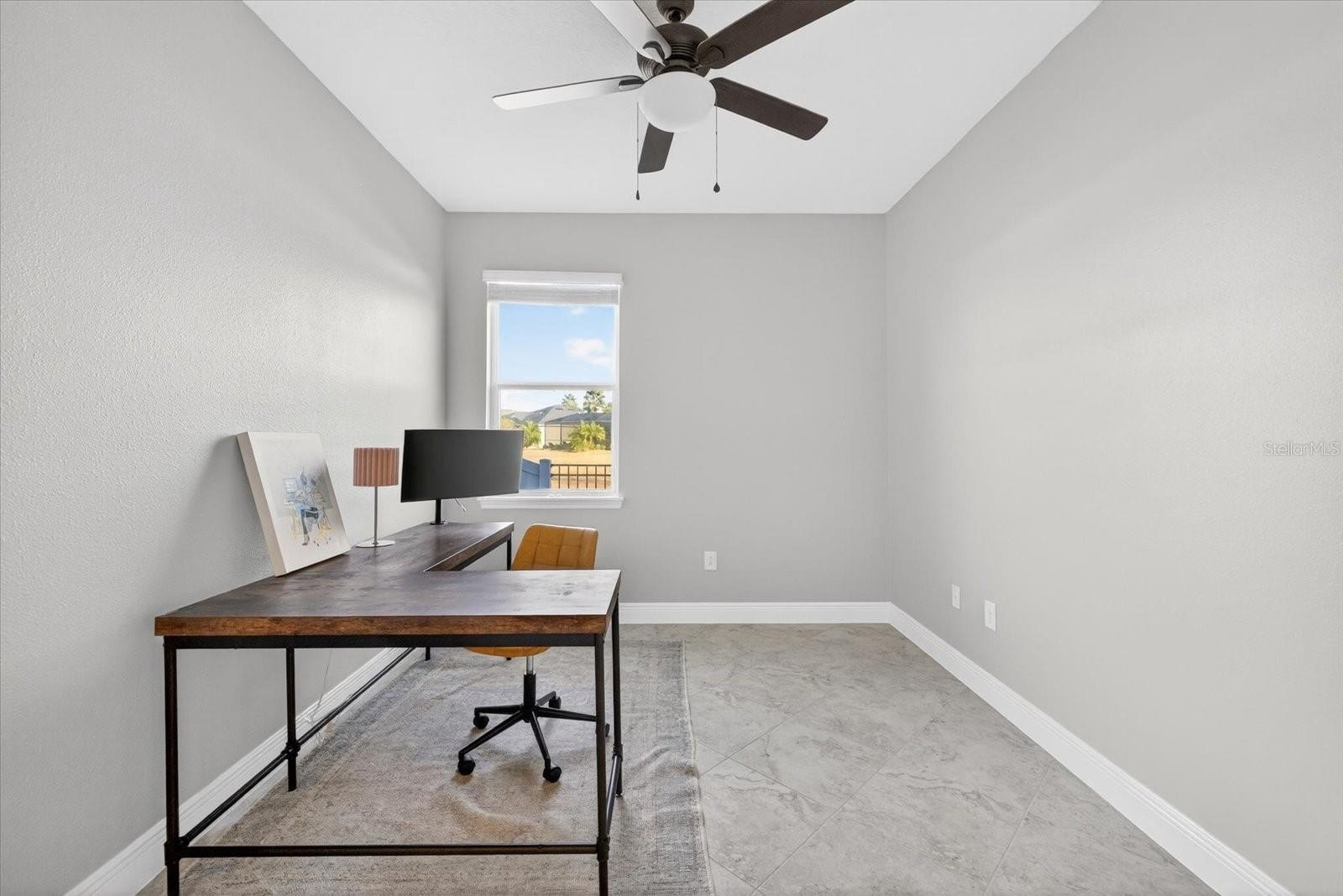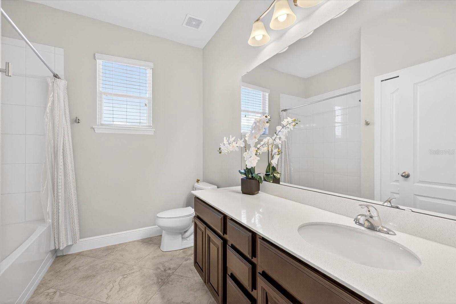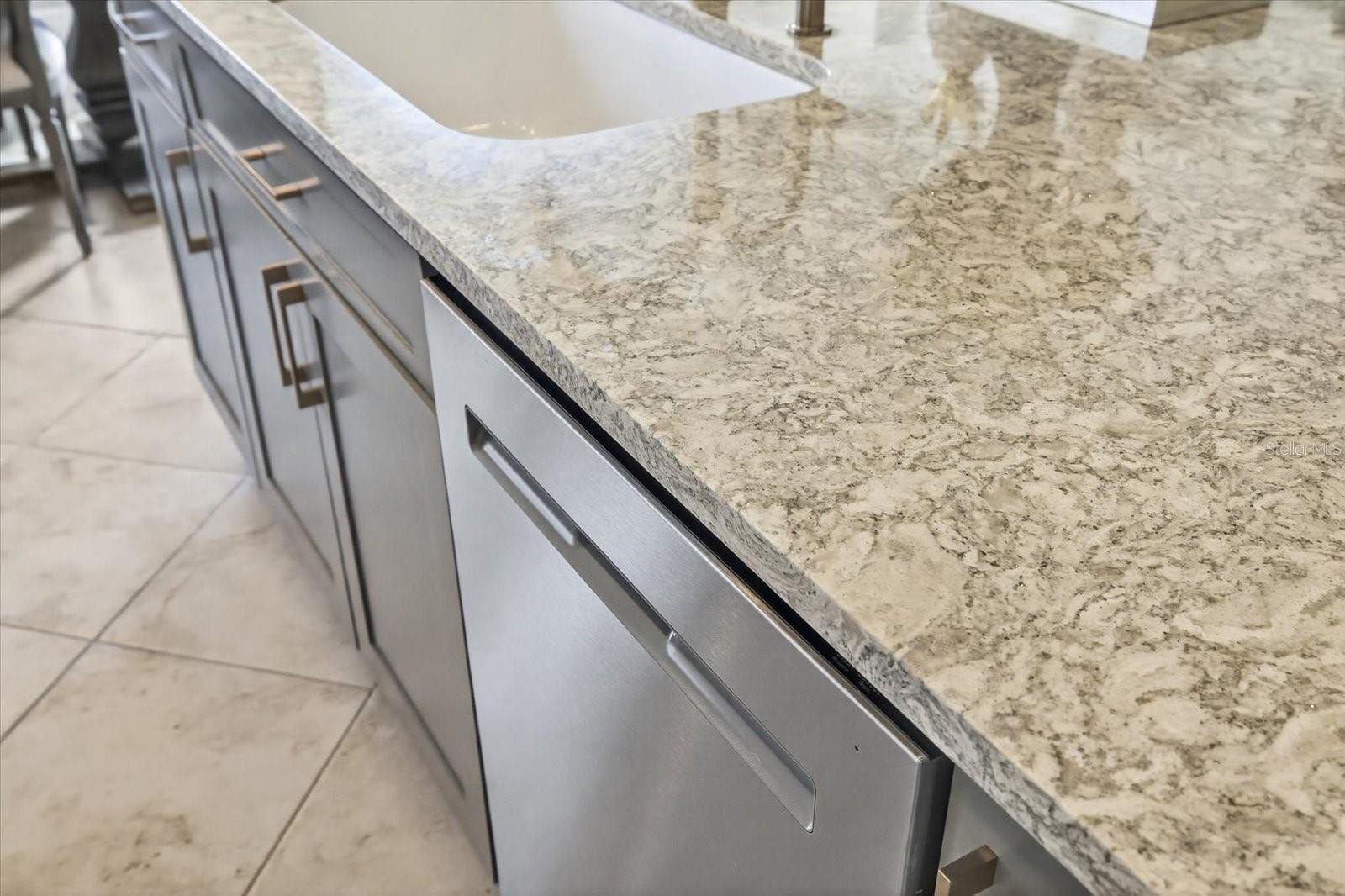 The designer interior continues with elegant wainscoting throughout the hallway (2024) and a custom-built-in entertainment center in the Great Room (2024). The gourmet kitchen boasts durable quartz countertops, marble backsplash, a large center island, and refreshed cabinetry with new faces and hardware (2023). Stainless steel appliances, (refrigerator, microwave, dishwasher) have been replaced within the last two years for total peace of mind.