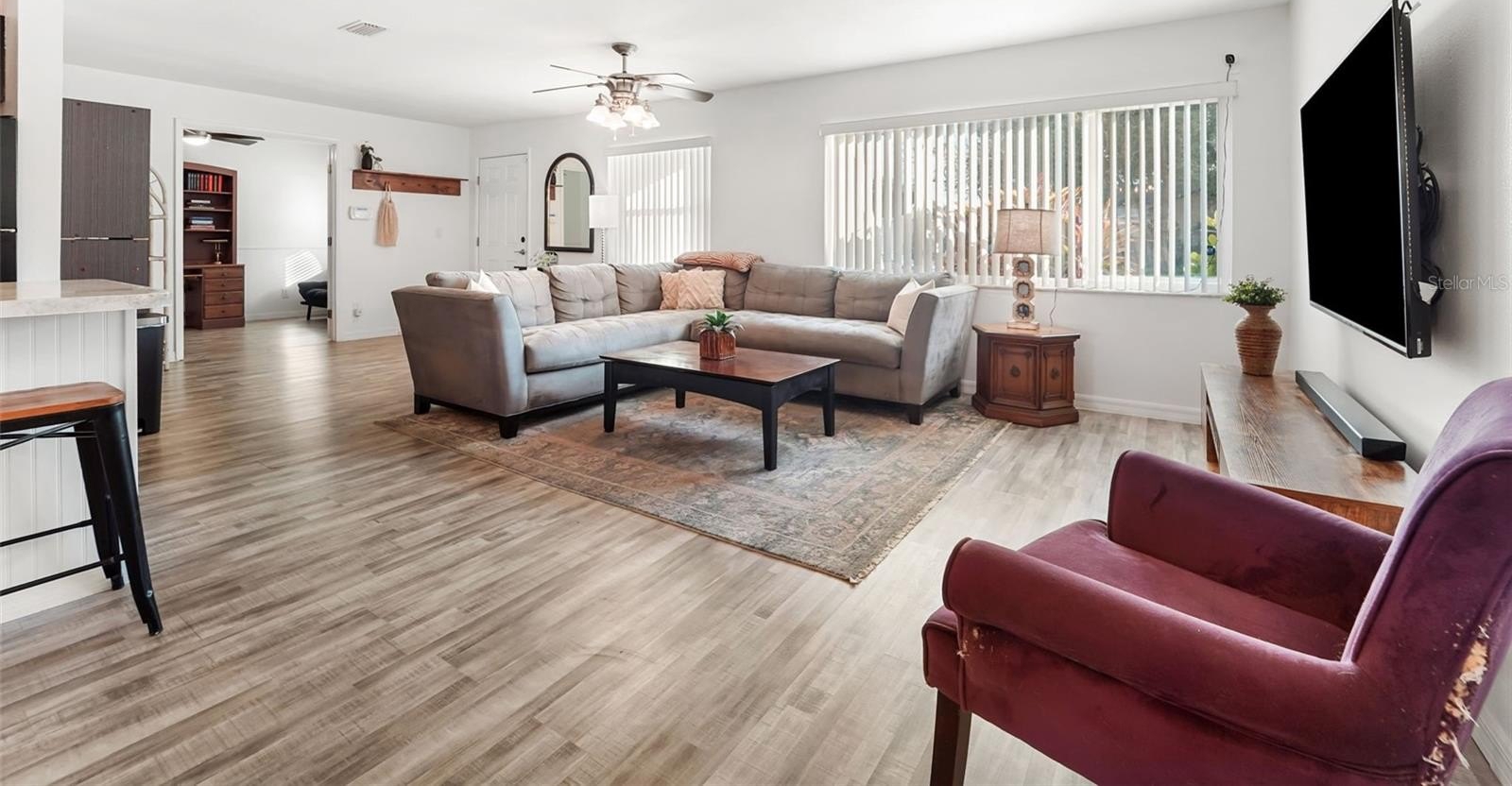 *Seller has an Assumable FHA Mortgage at 2.75%* Welcome Home! MOVE-IN READY and UPDATED 3 Bedroom, 2 Bathroom, 1 Garage House with a Large Fenced Backyard centrally located in one of New Port Richey's most desirable NON-HOA neighborhoods in sought-after community Seven Springs Homes. This charming 3-bedroom, 2-bathroom, 1 car-garage home has been meticulously cared for and owned for 5 years and is perfect for anyone as it's already updated to move right in! When you walk in you will be welcomed by bright natural light, contemporary updates, and an open floor plan. As you make your way through the home you will be welcomed into your open living room and kitchen where you can find your new beautiful laminate floors (2025) and updated and open kitchen with laminate/epoxy countertops, fresh wood cabinets, modern backsplash, and newer stainless steel appliances. There's also a dining room next to the kitchen making the openness of the living space great for contemporary living. As you make your way through the home you will find two spare bedrooms on your right hand side of the main hallway followed by the master bedroom at the end of the hallway. The master bedroom is well oversized with measurements of 16' X 15'1" and offers a walk-in closet and a master bathroom en-suite. The master bathroom has been tastefully updated in 2021 with beautiful white tile and modern finishes. Both spare bedrooms are also very spacious with measurements of 10'11" X 16'1" and 8'7" X 16'1". Additionally, on the left hand side of the main hallway you will find the second full bathroom which is updated and offers a tub and shower for convenience. Next let's visit your fully fenced, spacious backyard—perfect for pets and entertainment, with room to add a pool. This backyard offers a covered screened in lanai with tile flooring overlooking the great sized backyard where you can enjoy peaceful evenings as the night winds down and a covered patio for additional flexibility. The 1 car-garage features the washer and dryer, which convey, and attic access which is partially finished for lots of storage. Additional features include: Newer Roof (2020), HVAC (2015) with new condenser exhaust fan and capacitor replaced in 2024, Double-Pane and Insulated Windows (2012), New Exterior Paint (2026), and New Laminate Flooring (2025). Seven Springs Homes is a quiet neighborhood zoned within the sought-after school zones of Seven Springs Elementary, Seven Springs Middle, and James W. Mitchell High. Close to shopping, restaurants, gyms, and a short drive to Tampa International Airport and Florida Beaches! With NO HOA restrictions, a great layout, and meaningful upgrades already completed, this home is a true gem in New Port Richey. You won't want to miss this home as it's fully updated and move-in ready and it will go quickly! Schedule your showing today for this beautiful home! Virtual Tour Link: https://www.zillow.com/view-imx/d6c136f7-13bf-4ec5-a464-bffa7c134ad9?wl=true&setAttribution=mls&initialViewType=pano