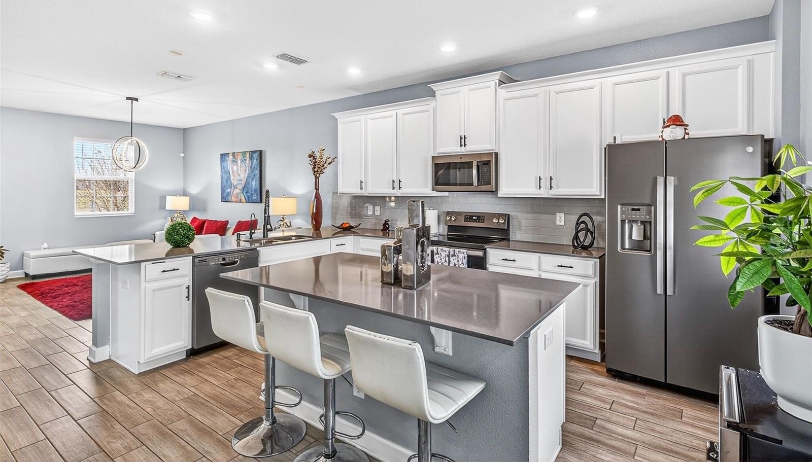 This beautifully upgraded residence offers plenty of space with an open-concept layout perfect for both entertaining and daily living. The gourmet kitchen is a true showstopper, featuring sleek modern cabinetry, premium countertops, stainless steel appliances, and generous prep space that flows effortlessly into the living and dining areas.