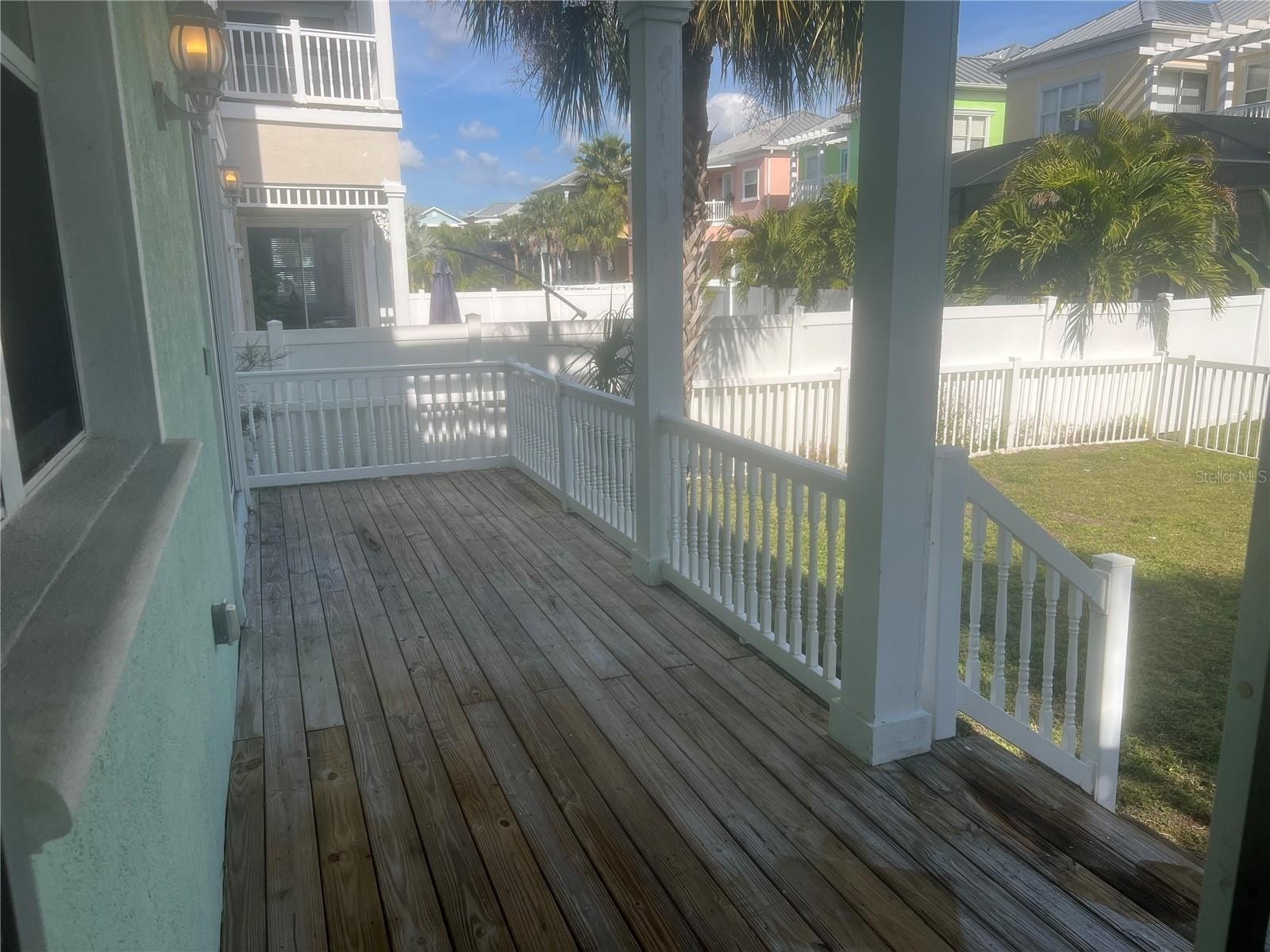 The property sits on a fenced yard with room to add a pool and features a unique layout with deck access from each bedroom, plus large front and back porches ideal for enhancing outdoor living. High ceilings add volume and architectural appeal, making this a strong candidate for a modern renovation that can significantly increase after-repair value.