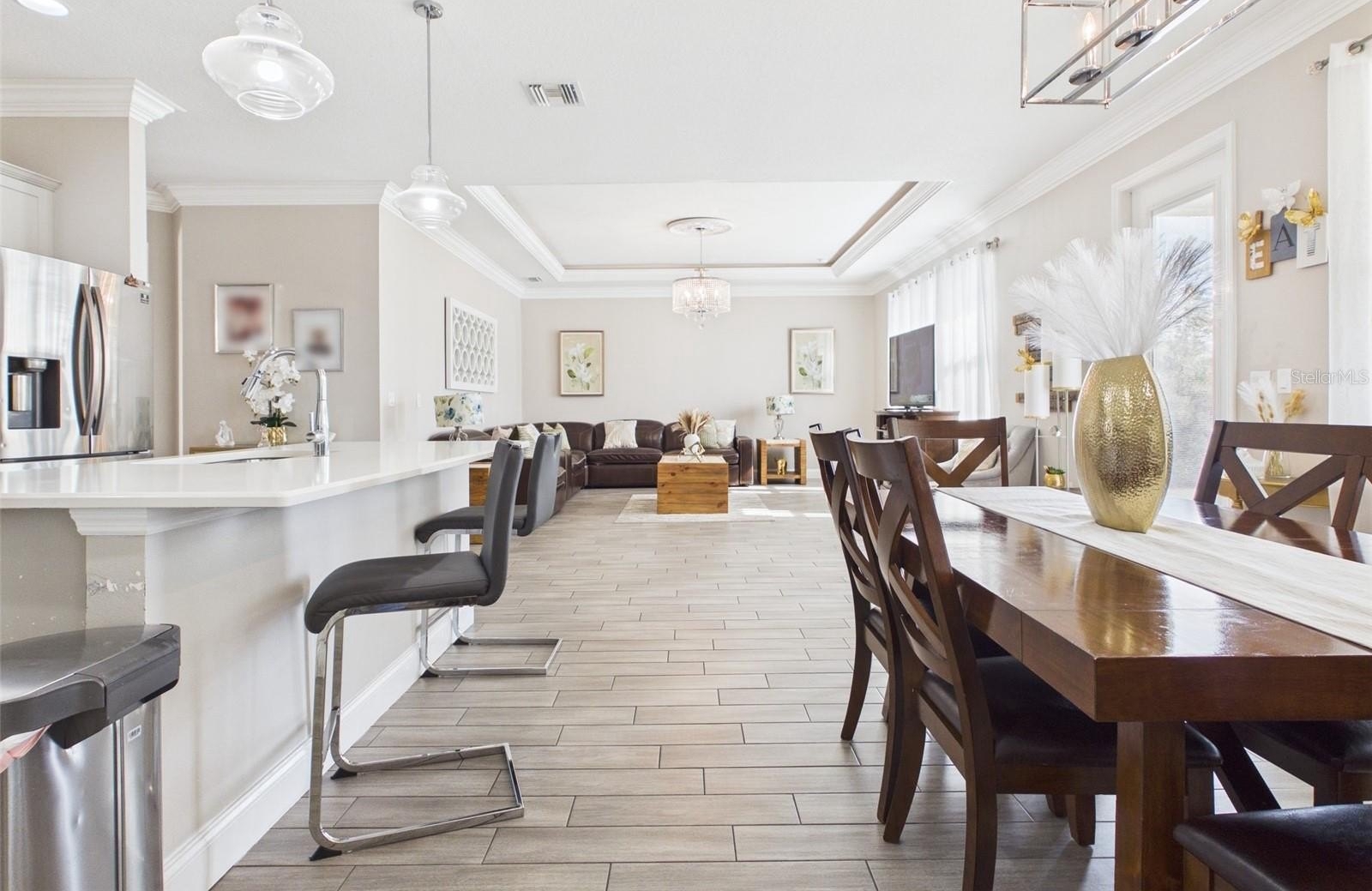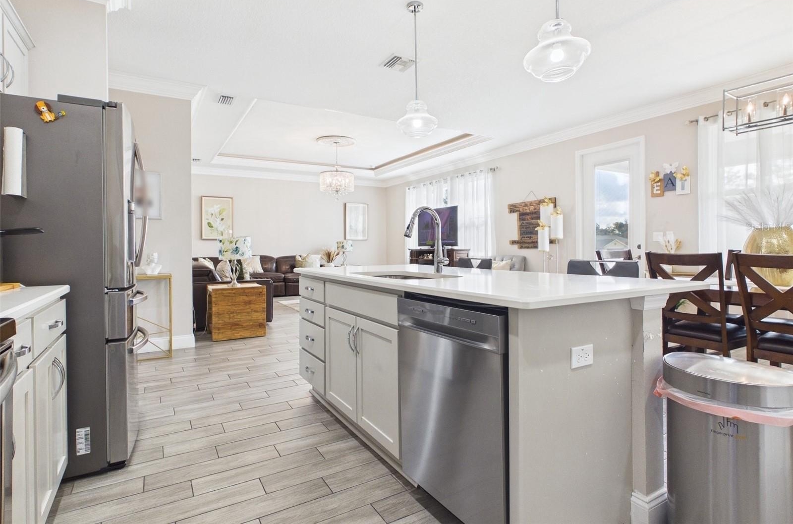 Step inside to discover an open-concept floor plan that seamlessly connects the living, dining, and kitchen areas, creating a bright and inviting space ideal for everyday living and entertaining. The kitchen features modern appliances, including a dishwasher, microwave, and range, providing both style and functionality.
