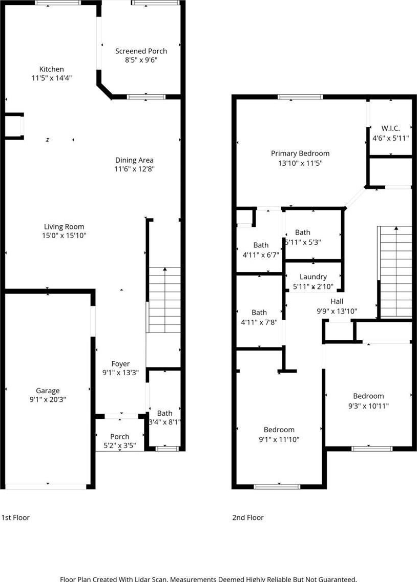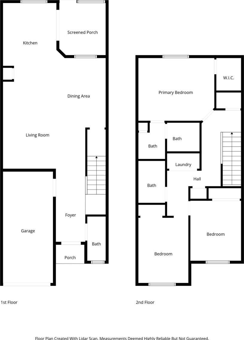 Upstairs, all three bedrooms provide great separation from the main living area. The owner’s suite features a walk-in closet and a private en-suite bathroom. Two additional bedrooms and a full bath complete the upper level, along with a centrally located laundry area.