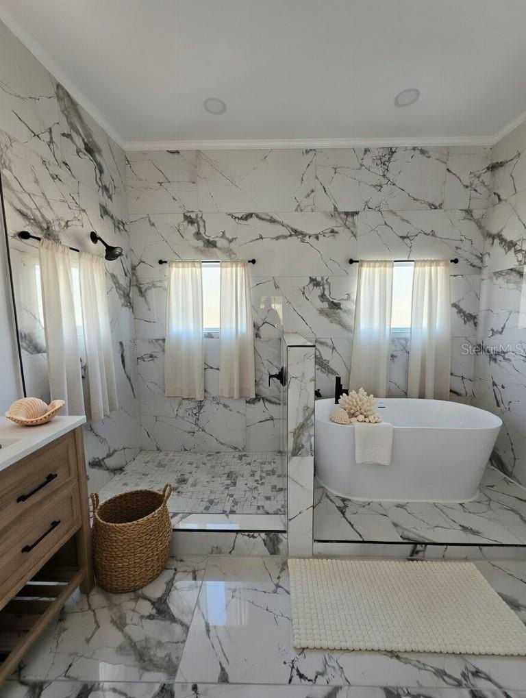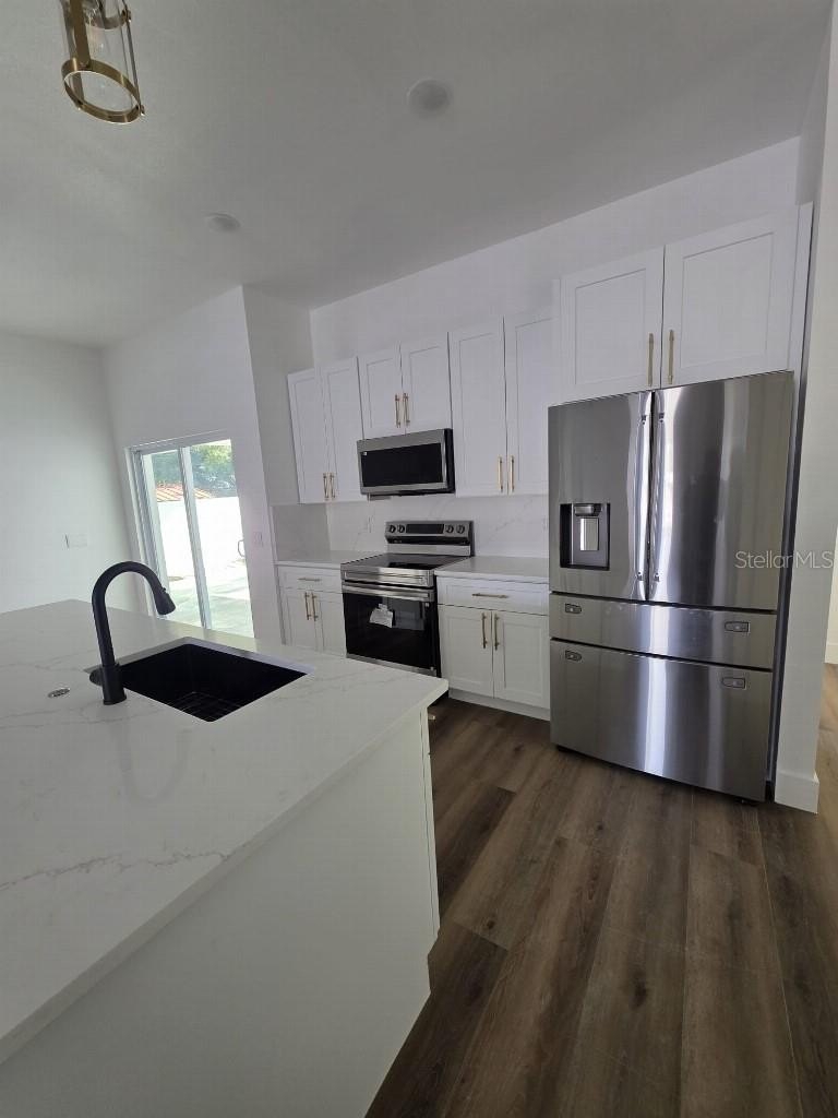 Welcome to 8766 94th Ave in Bardmoor subdivision. This BRAND NEW Modern Style home 5BR/2BA home appraised at 625K, with a convenient and highly sought-after location. The interior offers an inviting open layout highlighted by a brand-new kitchen featuring sleek cabinetry, exotic quartz counters, stainless steel appliances, and a large island designed for everyday use and entertaining. Both bathrooms have been thoughtfully designed with contemporary finishes and a fresh, clean aesthetic. Impact-rated windows and tall doors contribute to energy efficiency and low maintenance living. Sliding doors to a HUGE patio, high ceilings, large closet for storage and oversized garage. The split-bedroom floor plan provides privacy, with three spacious guest bedrooms and a shared bathroom featuring an updated modern vanity and a fully tiled bathtub on one side of the home, while the primary bedroom is tucked away on the opposite side and offers an en-suite master bath with 2 closets, an updated walk-in shower and his and her double sink modern vanity. House has huge driveway which can easily accommodate 4 cars. A rare find with style, space, and character—this Seminole gem truly checks all the boxes. Ideally located just minutes from Seminole City Center and Lake Seminole Park with easy access to shopping, dining, entertainment, short drive to the beautiful Gulf beaches, easy commute to Tampa and St Pete, and just about a half-hour from Tampa International Airport, this home offers convenience and comfort in one package and is a rare opportunity to enjoy the Florida lifestyle. Schedule your private tour today.
