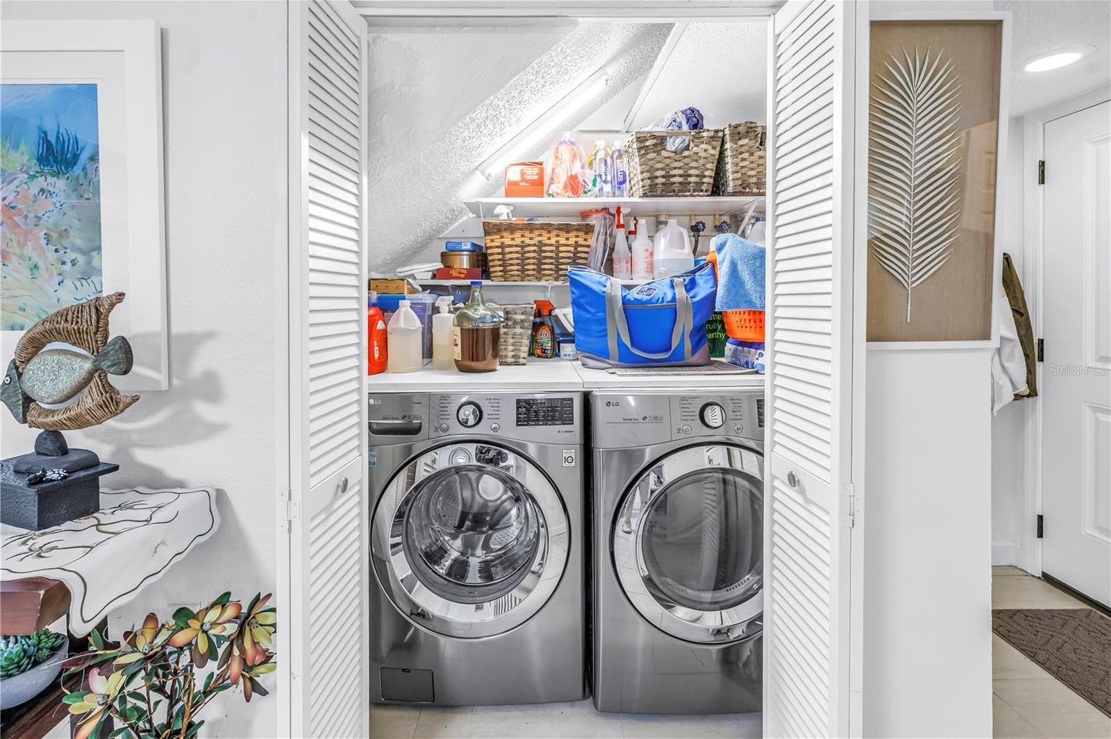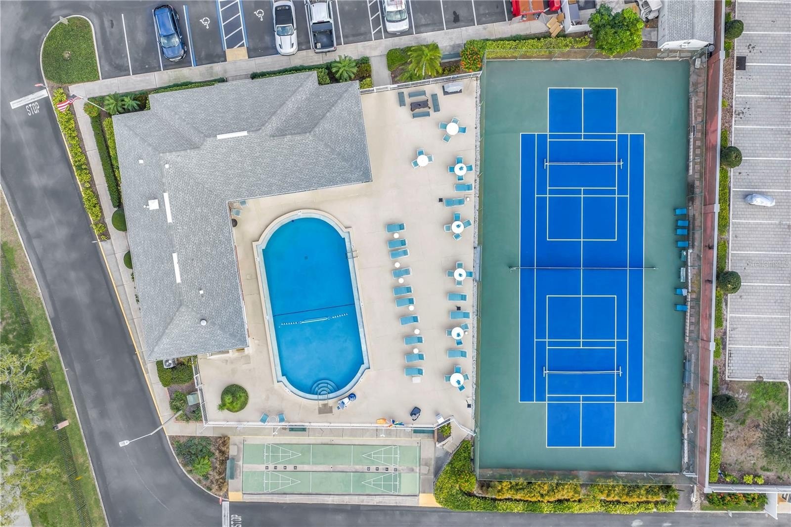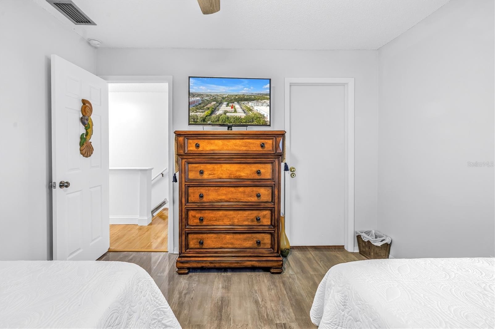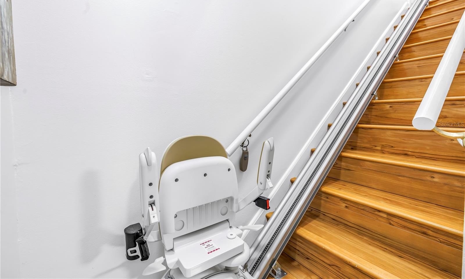 Upstairs, you’ll find two spacious bedrooms and two full bathrooms. The primary suite features deep closet, and an updated en-suite with dual sinks, granite counters, and a large walk-in shower. The guest bedroom is generously sized with a walk-in closet and access to an updated guest bath, providing comfort and privacy for visitors. Additional features include hurricane impact windows and doors throughout and a chairlift for easy access to the second floor.