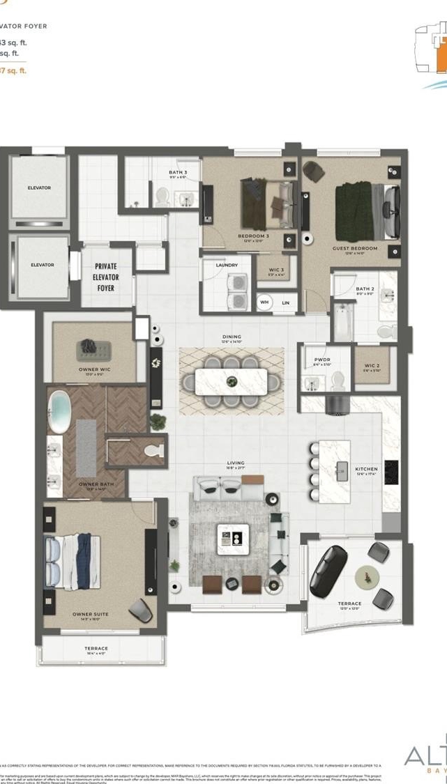 One or more photo(s) has been virtually staged. One or more photo(s) has been virtually staged. COMPLETED IN 2024 . Welcome to ALTURA Bayshore, an unprecedented new condominium living experience with resort-style amenities rising above Hillsborough Bay and iconic Bayshore Boulevard. This 3 Bedroom, 3.5 Bath residence features 2,443 SF plus two covered terraces, private elevator foyer, impact glass, high ceilings, 2 parking spaces, storage unit, and an open floor plan perfect for entertaining. This is ALTURA's last remaining Developer-owned opportunity - ***BUYER HAS OPPORTUNITY TO SELECT FLOORING & CABINET HARDWARE AT CONTRACT*** The gourmet kitchen features a large island with seating and includes many fine upgrades: countertops, cabinetry, paneled gourmet GAGGENAU appliances including a wine chiller and induction range (gas available). The Owner’s Suite has direct Bay views, private terrace, spacious walk-in closet and spa-like bath. 2 additional bedrooms with en suite baths, powder bath and laundry room complete the living space. See floor plan in photos. In addition to a 24-hour Front Desk, ALTURA boasts two distinct amenity levels; The rooftop features: a large pool with lap lane and sun shelf, shade cabanas and lounges, bar & grill area, private club room with gas fireplace, sunset viewing terrace, fire pits, casual seating, large bar, and flat screen tv’s for the ultimate entertaining experience. The 4th level offers: Fitness center with bay views, 2 guest suites, putting green, firepit, 2 fun pickleball courts, half-court basketball, bocce courts and a dedicated dog park with shade pavilion. ALTURA Bayshore sets the standard for luxury, maintenance-free living in this prime South Tampa location, central to all the best entertainment and restaurants in Tampa. Fine dining options 1-3 blocks away include: Barcelona, CounterCulture, Pane Rustica, Yoko Sushi, and many more! Enjoy a stroll along the Bayshore Trail, upscale shopping & dining in nearby Hyde Park Village, or a night out on South Howard Avenue - ALTURA's prime location has it all!