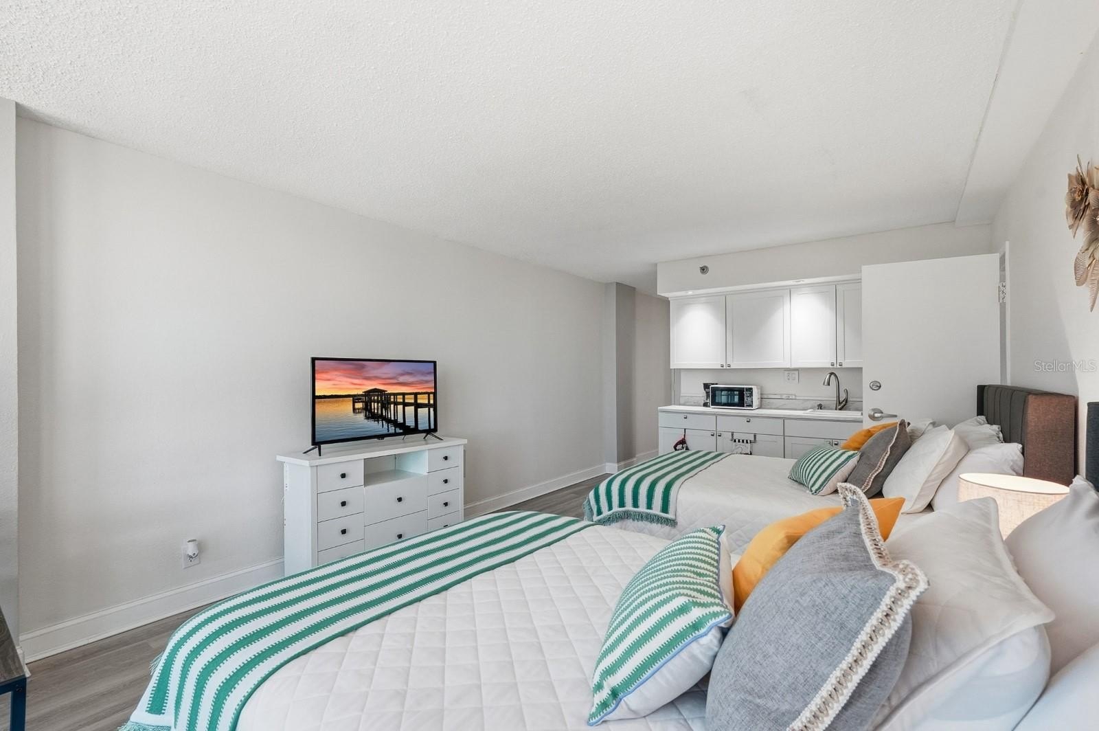 2 Units for the Price of 1 - Fully Remodeled, Fully Furnished, and Steps from the Beach!Welcome to 1909 S. Atlantic Avenue, Units 407 & 408 — two beautifully remodeled studio units that can be used separately or together for the ultimate flexibility. Simply unlock the adjoining door to create a spacious 2-bedroom setup with four beds and two full bathrooms — perfect for family getaways, guests, or short-term rental income.Both units are being sold completely turnkey, including all furnishings, décor, and appliances. The resort features a recently remodeled swimming pool, kiddie pool, tiki bar (open four days a week), exercise room, guest laundry, vending machines, and an on-site ATM.Enjoy the freedom to live in one while earning income on the other, or rent them both for maximum return. Just steps from the World's Most Famous Beach, this Daytona Beach gem offers comfort, convenience, and flexibility all in one.