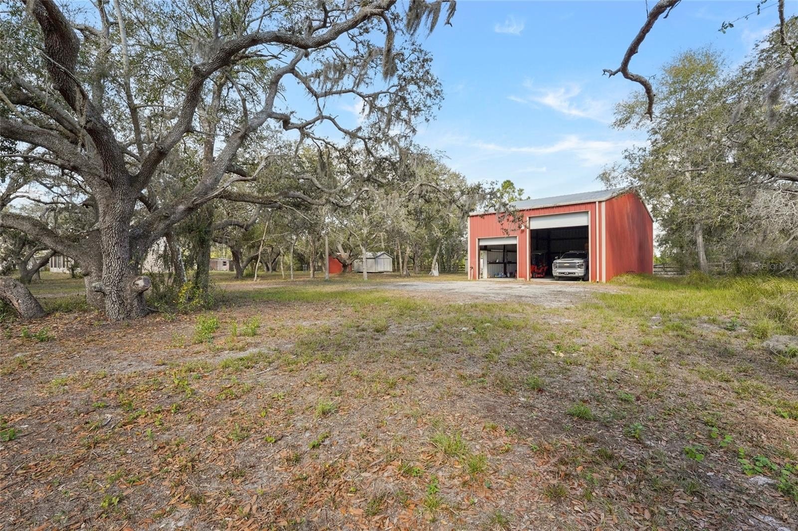 One or more photo(s) has been virtually staged. Welcome to your private slice of Old Florida charm in the heart of Myakka City. Tucked away on 2.27 acres, this beautifully maintained property offers space, privacy, and versatility — all with NO HOA and agricultural zoning, making it ideal for homeowners, hobbyists, or business owners alike. The main residence is thoughtfully updated and designed for comfortable everyday living. Recent improvements include a new roof (2024), new heat pump systems for both main and second floors (2024), updated flooring, refreshed staircase, and a remodeled primary bathroom featuring a tiled walk-in shower. The kitchen is equipped with Whirlpool appliances, tile flooring throughout the first floor, and a tankless water heater for efficiency and convenience. One of the standout features of this property is the 1,500 sq ft red iron industrial building, wind-rated in excess of 130 MPH, with separate 200-amp service, a monolithic slab, and multiple roll-up doors — perfect for a workshop, storage, or business use. In addition, there are four outbuildings, offering even more flexibility for equipment, animals, or creative projects Set beneath a canopy of mature oak trees, the land feels like a park-like retreat. The property sits approximately 90 feet above sea level and flood zone X. The county-maintained paved road and quiet dead-end location enhance both accessibility and privacy. Despite its peaceful setting, this home is conveniently located just minutes from local favorites and essentials — including Fiorelli Winery, Hunsader Farms, and a new Publix on SR-64 — while still within easy driving distance to Gulf beaches, Sarasota, Tampa, and major airports If you’re looking for space, freedom, and long-term value in a truly serene setting, this Myakka City property delivers a rare combination of lifestyle and practicality.