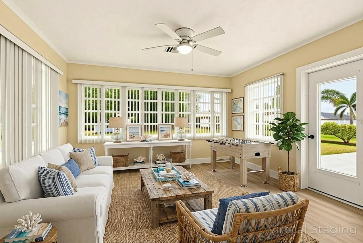 One or more photo(s) has been virtually staged. Welcome to one of West Bradenton's most desirable locations-Fairway Acres, Crestmoor subdivision! This peaceful neighborhood offers the perfect balance of tranquility and convenience, with easy access to the stunning Anna Maria Island beaches, numerous grocery stores, charming cafes, and fine dining. Located at the end of a quiet street, this home enjoys minimal traffic noise and in just 10 minutes from IMG Academy. Situated on a generous 0.26-acre lot, the fully fenced backyard offers endless possibilities-ideal for a private pool, playground, or a beautiful garden retreat. The home is thoughfully updated and ready to move in. The shingle roof was replaced in October 2025, and the front gutters have also been recently replaced. Inside, the seller installed new closet doors and new modern flooring throughout the entire home-no carpert, perfect for allergy-consious living. The ceilings in the living/dining rooms were freshly repainted in 2026 and complemented by new modern light fixtures. The modern kitchen was completetly updated in 2025, feauturing new contemporary cabinets, new countetops, and a new refrigerator, creating a stylish and functional space for everyday living and entertaining. The spacious living room flows seamlessly into the dining area, offering ample room for a large dining table-perfet for family gatherings. The home includes two expansive bedrooms with large closets featuring built-in shelving, plus an additional storage/linen closet near the bathroom. A large bonus game room or family room provides flexibility and can easily be converted into a third bedroom. The home features one remodeled full bathroom and an additional second bathroom conveniently located in the garage. Enjoy an unbeatable location-just 1.8 miles from Palma Sola Bay and only 4 minutes from HCA Florida Blake Hospital, offering comfort, convenience, and peace of mind. Best of all, there are NO HOA or CDD fees. Fairway Acres is known for its fee-free lifestyle, allowing homeowners to live without worrying about unexpected costs or future fee increases. Come and see this wonderfull property filled with potential and enjoy living close to the Bay, surrounded by fine restaurants, cafes, and some of Florida's most popular beaches.