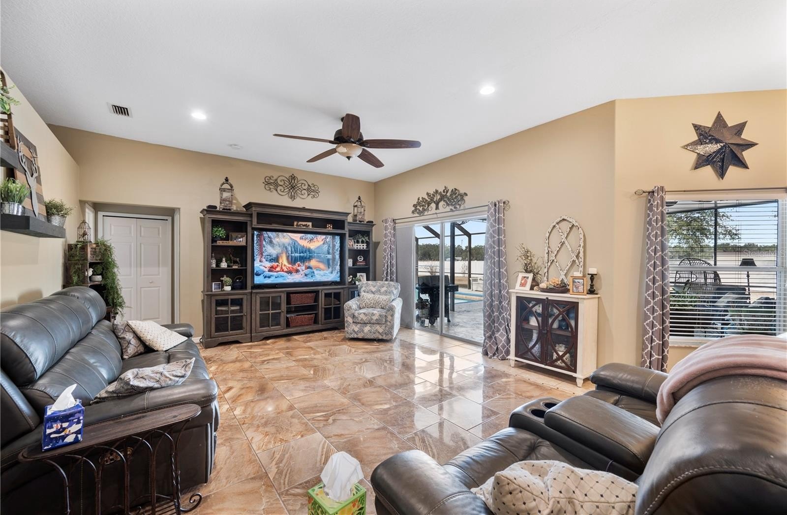 Welcome to this beautiful 4-bedroom, 3-bathroom home situated on 1.43 acres in Plant City, FL, offering space, privacy, and modern upgrades. Recent improvements include new roof shingles, new septic lines, and a new AC system, providing peace of mind for years to come. A water softener has also been installed for added comfort and efficiency. Inside, tile flooring runs throughout the home, creating a clean and cohesive look. A dedicated den/study/office offers flexibility for working from home or additional living space. The spacious primary suite features a walk-in closet and a well-appointed bathroom with dual sinks, a walk-in shower, and a relaxing garden tub. Bedrooms two and three share a convenient Jack-and-Jill bathroom, ideal for family or guests. The open layout allows for comfortable everyday living and entertaining. Step outside to a covered patio overlooking a fully screened private pool, perfect for enjoying Florida’s outdoor lifestyle year-round. The expansive backyard is fenced on the sides, with the rear opening to a peaceful pond view. Additional outdoor features include a basketball court and a large metal shed for storage or hobbies. With plenty of room to spread out both inside and out, this property offers a rare blend of comfort, functionality, and land. Located with easy access to local amenities while maintaining a private, country feel, this home is a must-see. Schedule your private showing today.