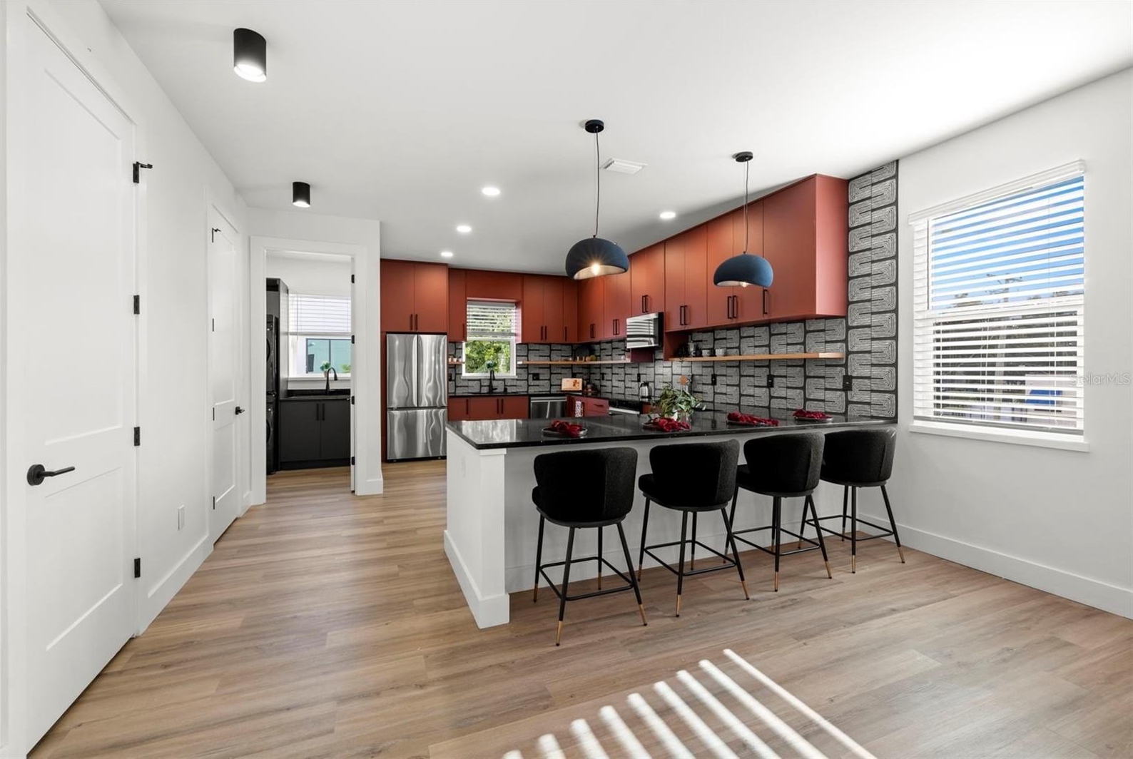 New Construction Townhome in Tampa Heights. Discover this stunning 4-bedroom, 4.5-bathroom new construction townhome, perfectly designed for modern living and simultaneous investment potential. On the first floor you will find the one car garage & a fully equipped private studio with its own entrance, kitchen, and full bathroom—ideal for short or long-term rentals, in-law suites, or guest accommodations. On the second level you will find your main living space. Here, you'll find a stylish moody kitchen, half bath, glass wall, laundry, balcony, & open concept living with plenty of space for entertainment. On the third level you will find 2 well appointed guest rooms, each with their own en-suite baths. The expansive primary bedroom is also located on the third level & features a moody en-suite bathroom, built out closet, & private balcony. Located just steps from Armature Works, Tampa Riverwalk, and all the dining, shopping, and all entertainment in Downtown Tampa, this home offers unmatched convenience in one of the city’s most sought-after neighborhoods. Seller is offering a kitchen upgrade (cabinets & backsplash) or credit for qualified buyers. See renderings.