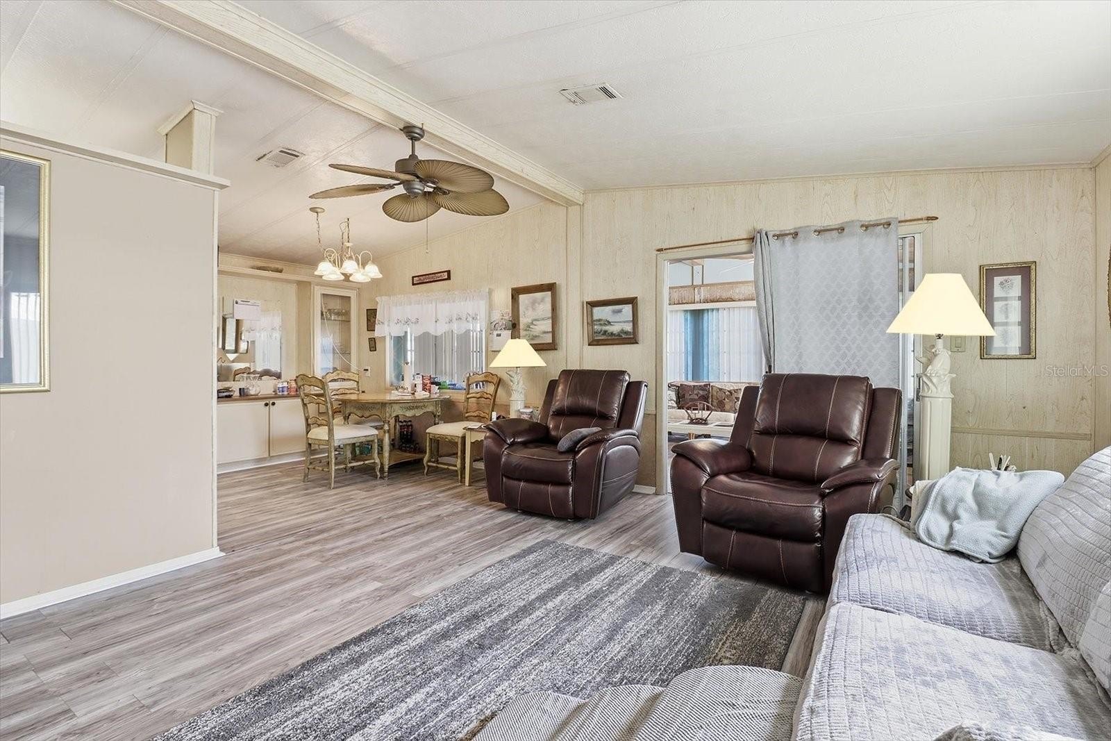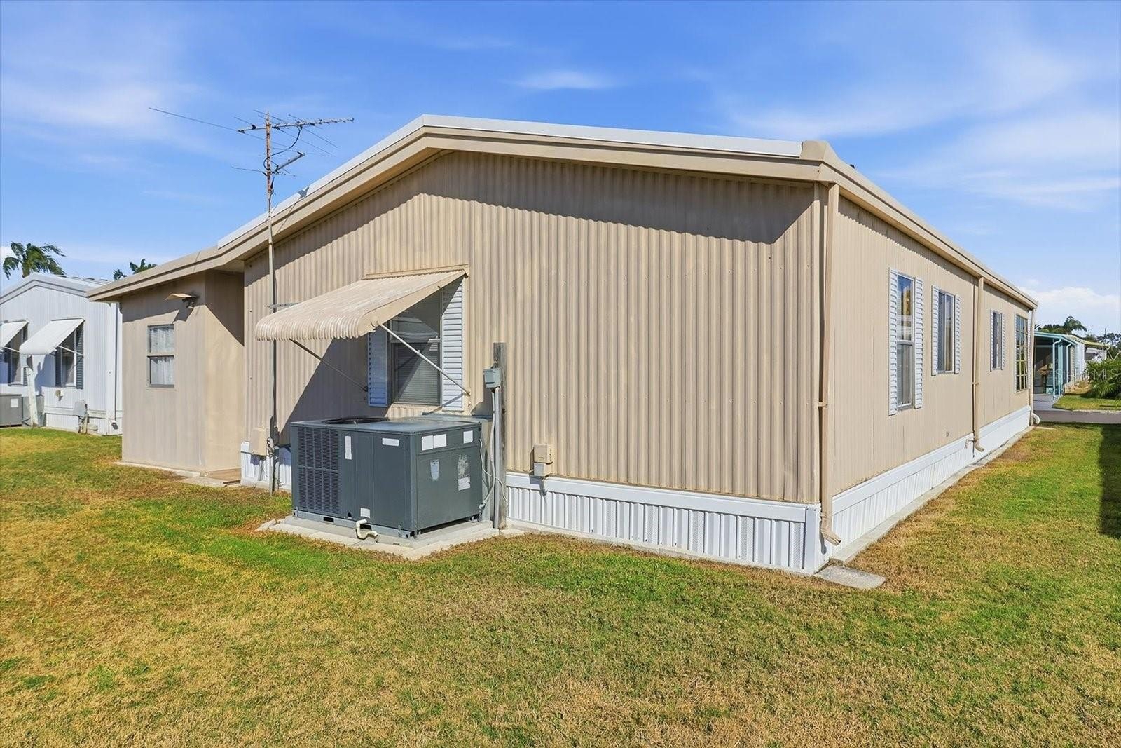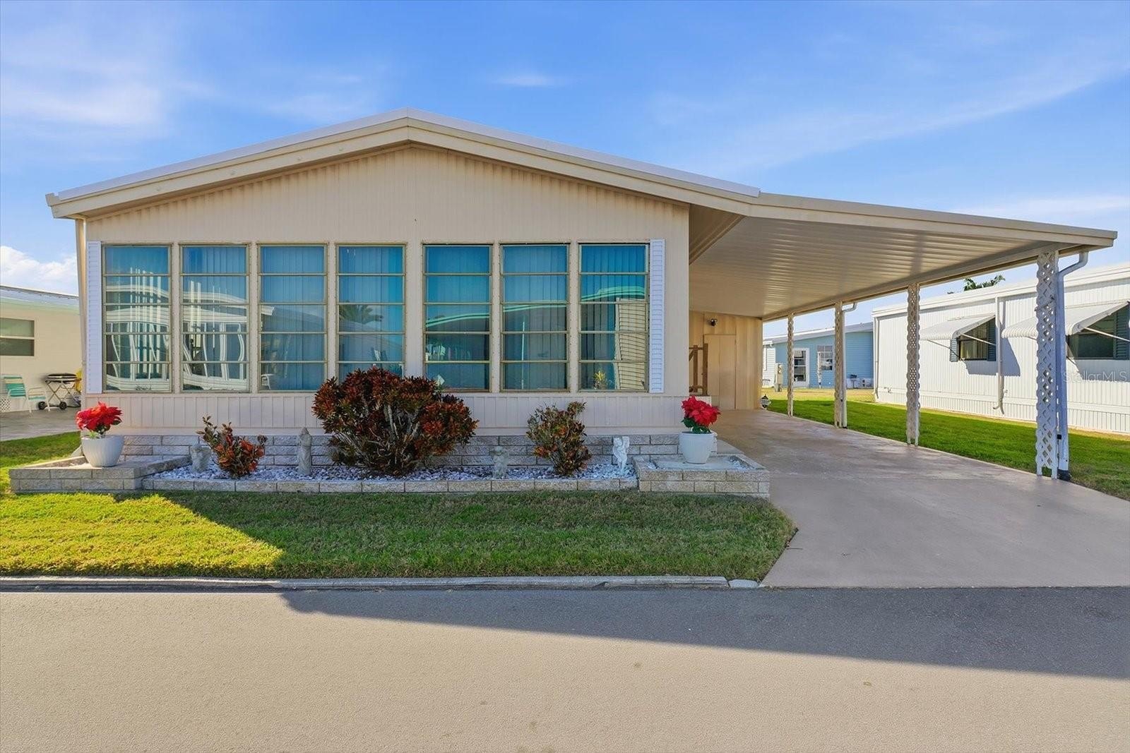 Welcome to 2045 Hilo Drive, a move-in-ready double-wide manufactured home tucked inside the gated Lake Conley community in Holiday. This 2-bedroom, 2-bath residence offers 960 square feet of comfortable living space with high ceilings and an open living and dining room combo that feels bright and easy to live in. The kitchen provides generous cabinet space and flows naturally into the main living areas, creating a functional layout for everyday use or rental efficiency. The primary bedroom features a walk-in closet and private bath, while the second bedroom works well for guests or a home office. Step into the covered and screened porch, an inviting spot to unwind and enjoy Florida evenings. The owner's added duct work (in 2023) to this lanai where you can enjoy cooling or heating in this extra space. The home comes furnished, includes a carport and storage shed, and offers access to community amenities such as a pool, clubhouse, gated entry, fishing, and a community boat ramp. Ideal for an owner-occupant or as a long-term rental opportunity in a well-established community. Conveniently located near shopping, dining, and major roadways. HOA approval required. Buyer to verify all information. Schedule your showing today!
