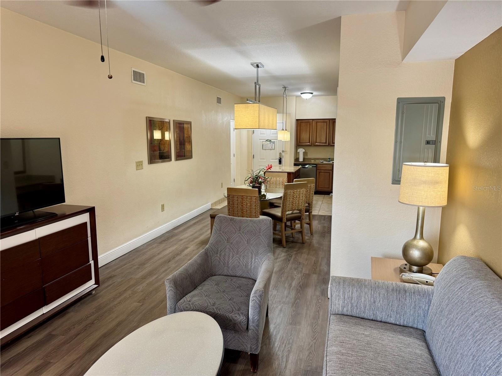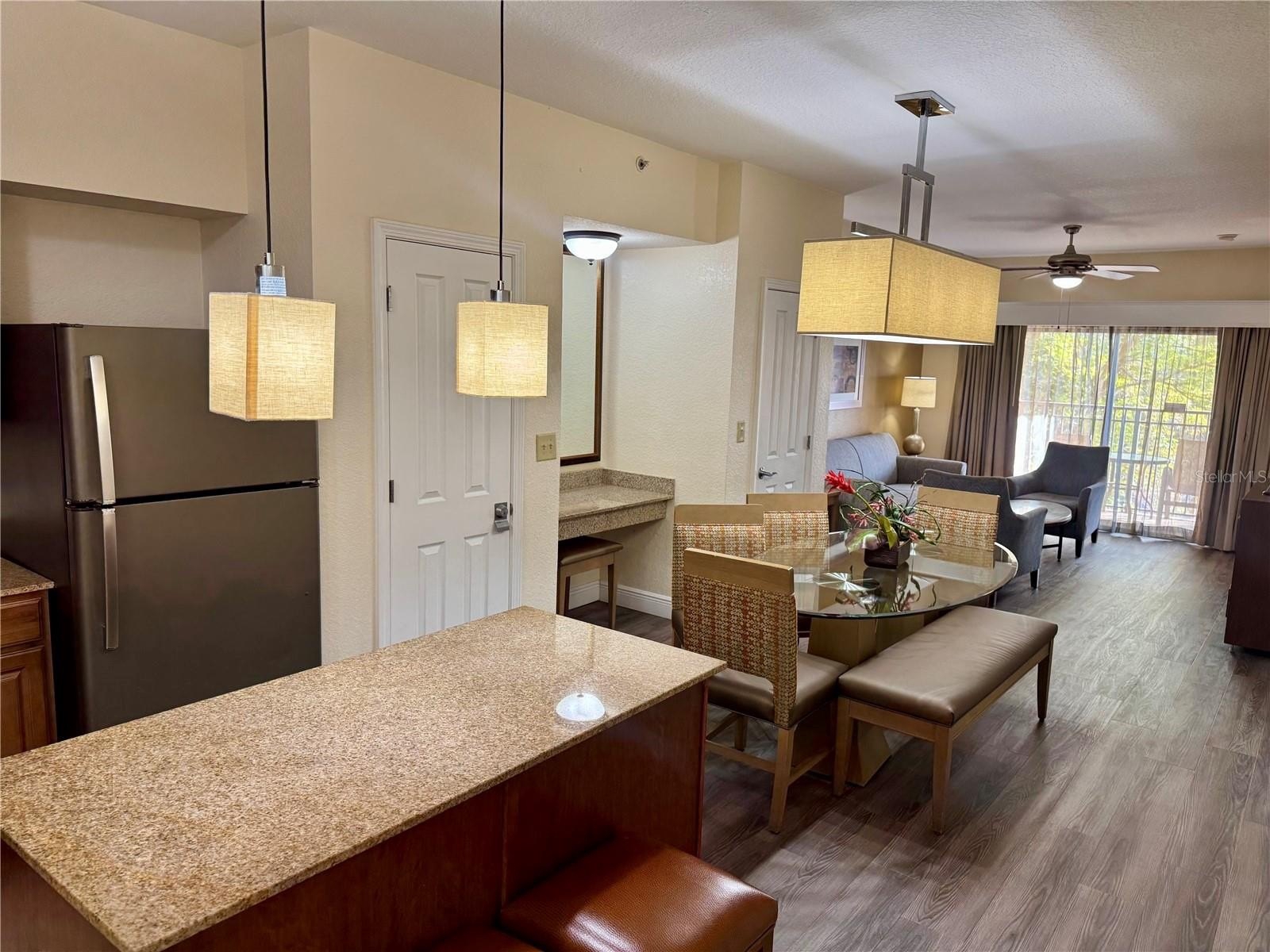 Fully furnished 3-bedroom, 2-bath condo-hotel unit located on the 3rd floor at the highly desirable Floridays Resort. This spacious split-bedroom floor plan offers privacy along with an open-concept living and dining area, ideal for relaxing or entertaining. The expansive kitchen features stainless steel appliances, granite countertops, a center island, and ample cabinetry. A separate workspace area and in-unit washer and dryer add everyday convenience. Turnkey and ready for use, this unit is an excellent vacation home and income-producing rental opportunity. Enjoy resort-style amenities including two swimming pools, playground, game room, on-site restaurant, grocery/convenience store, and professional on-site rental management. Prime location just minutes from Disney World, major theme parks, dining, and shopping. Perfect for investors or owners seeking a hassle-free vacation property, call for your private tour today!!