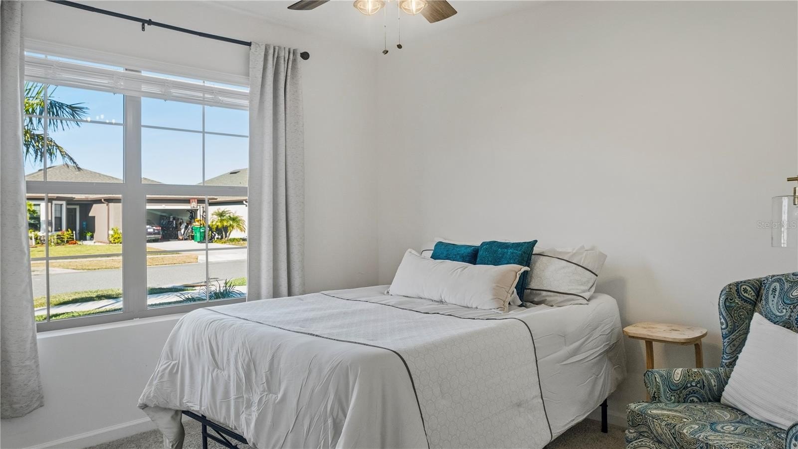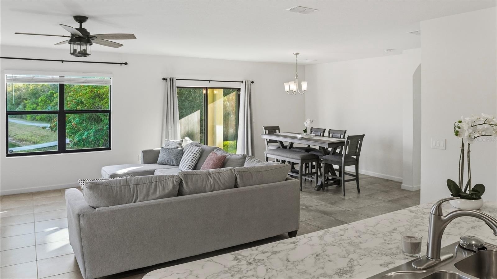 Welcome to the extended Cali, offering an open floor plan and a covered lanai with a beautiful water view. Easy access to the walking trail that leads to the community pool and playground. Your kitchen boasts a large walk-in pantry, a large island, and an open dining and living space to entertain. The owner's suite is ample, with a double-vanity bath and a large walk-in closet. Three additional bedrooms and the guest bathroom provide separate space to spread out. Each bedroom and the living area have ceiling fans. The garage has a built-in storage system for better organization. This home is wired for smart technology and a security system. The lawn features new sod, and the irrigation system is economical, utilizing its own well. Adamson Creek community is a quiet community with easy access to I-95, Cape Canaveral, beaches, and 30 minutes to Orlando International Airport.