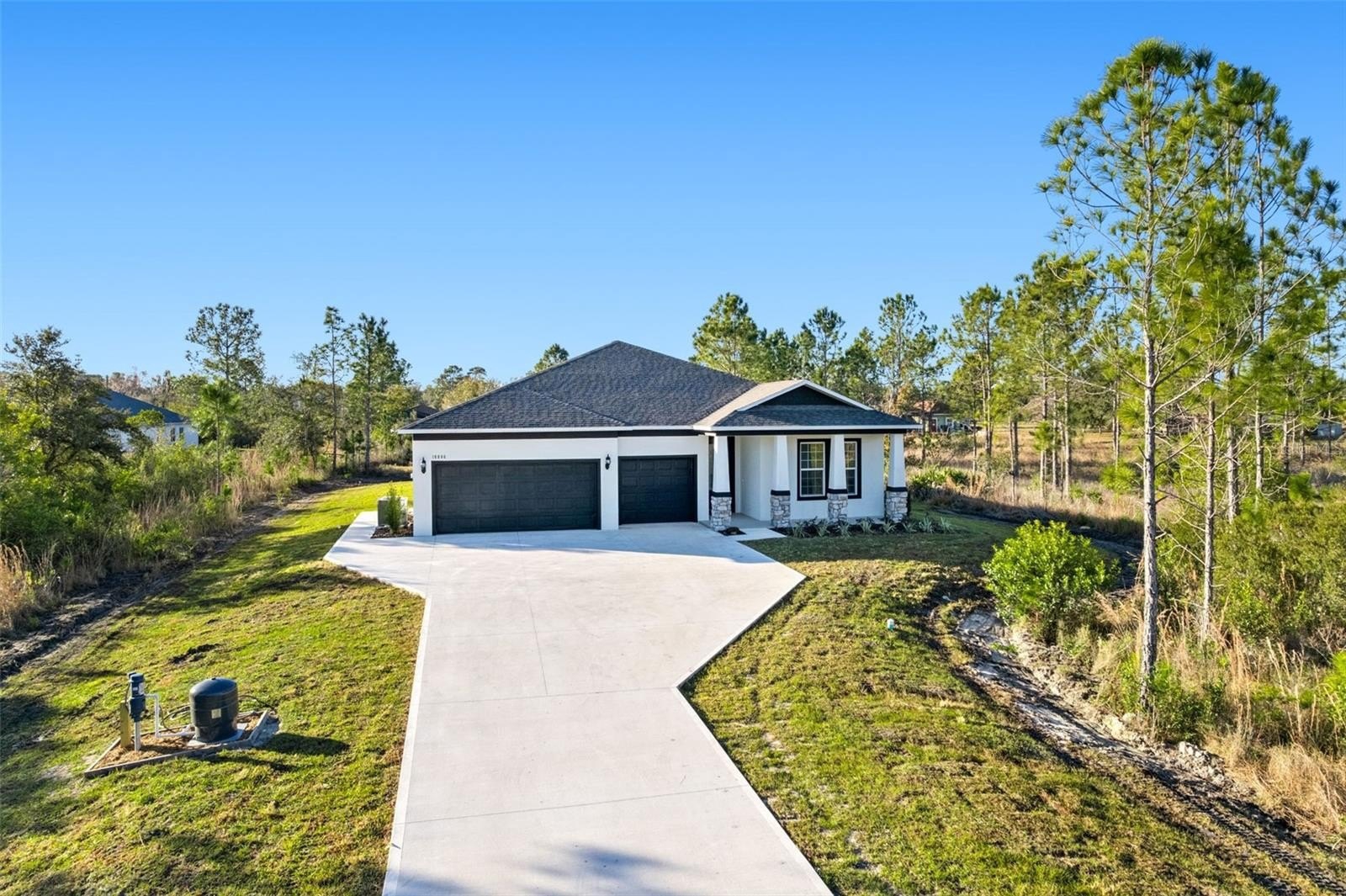 Additional highlights include a large laundry room, a 3-car garage, and the peace of mind that comes with brand-new construction. Step outside to enjoy the covered lanai and an extended paver patio—perfect for entertaining or relaxing while taking in the serene, tree-lined surroundings.