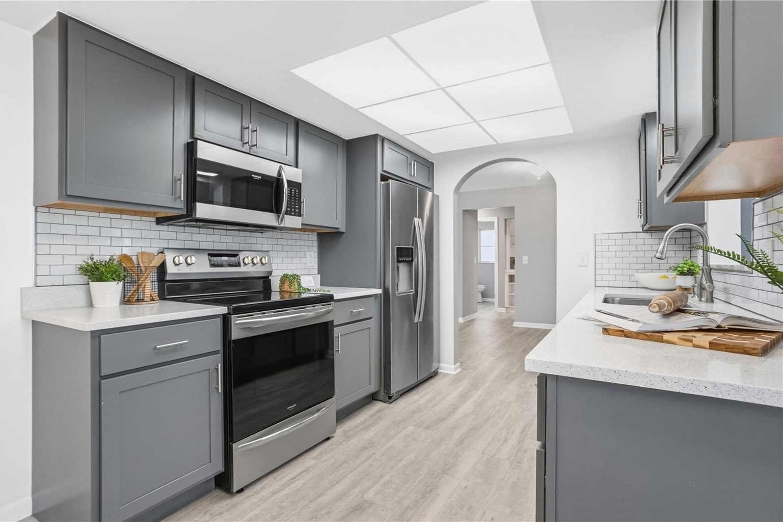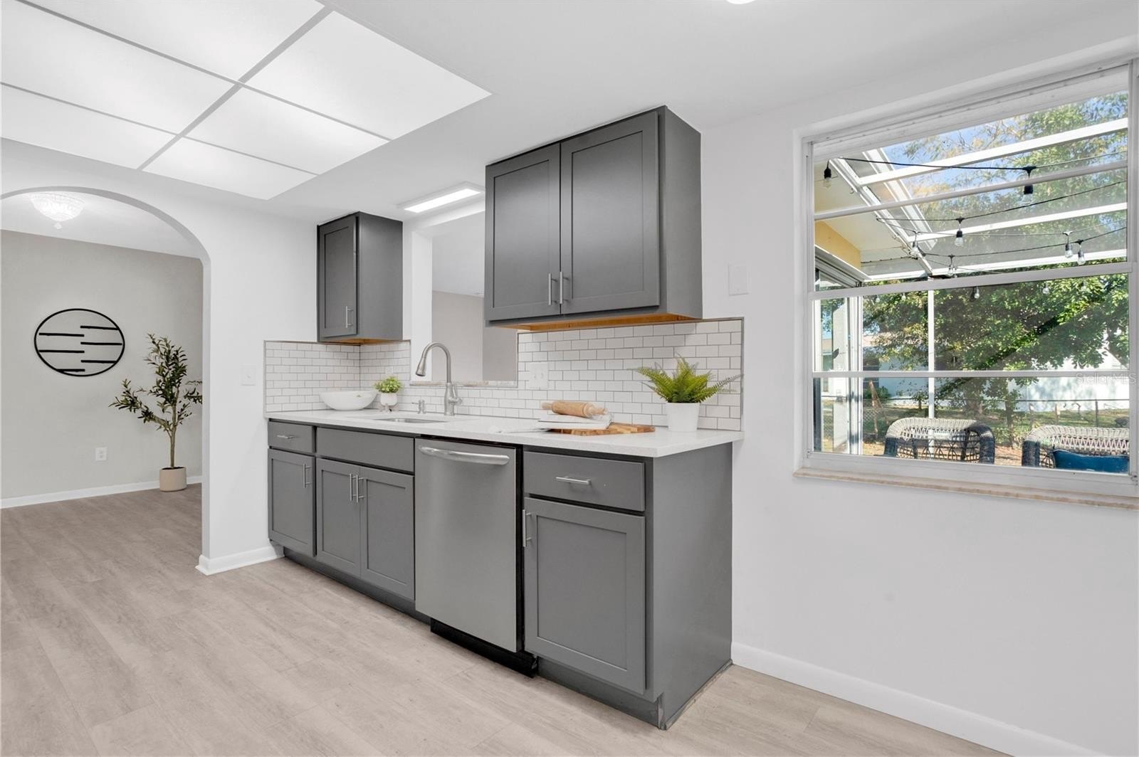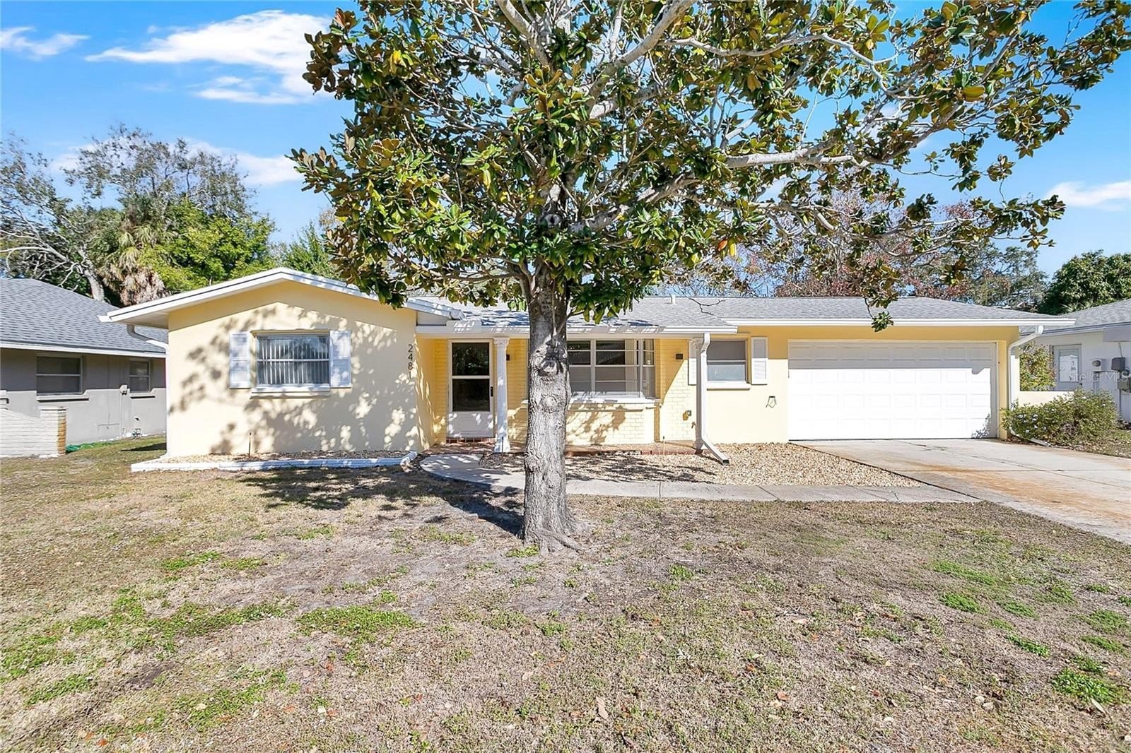 Welcome to The Golden Magnolia, a move-in-ready and beautifully updated 2 Bedroom, 2 Bath, 2 Car Garage home located just 2 MILES from Florida’s Gulf beaches and in a non-flood zone, this home offers long-term value and coastal appeal. Step inside to a bright, airy living room perfect for relaxing or hosting, featuring luxury vinyl plank flooring (2021) and fresh interior paint (2021) that give the home a clean, modern feel. Toward the back of the home, a versatile dining and sitting room offers flexibility as a home office, playroom, or main gathering space. The fully renovated kitchen is the heart of the home, showcasing modern cabinetry, stainless steel appliances, generous counter space, and a cozy breakfast nook area overlooking the backyard, perfect for slow mornings and casual meals. Just off the kitchen, you’ll find a convenient indoor laundry area and a second full bath. Both bedrooms are generously sized, with the primary suite featuring dual closets, including a large walk-in, and peaceful backyard views. Major Updates & Peace-of-Mind Features Include: Hurricane shutters (including built-ins for sliders), Roof (2017), AC (2019), Electrical panel (2021), Partial re-piping (2023), Water heater (2023), Whole-house water softener, and Exterior paint (2023). Outside, enjoy coffee at sunrise or evenings with friends on the screened-in patio, overlooking a spacious yard with a garden box. This home sits at a 31-foot elevation, is located in a non-flood, non-evacuation zone, and shares a power grid with a nearby hospital, offering added reassurance during storm season. This is your opportunity to enjoy coastal Florida living in a thoughtfully updated, well-maintained home close to beaches, parks, nature preserves, shopping, dining, and healthcare. Schedule your private tour today and experience The Golden Magnolia for yourself.