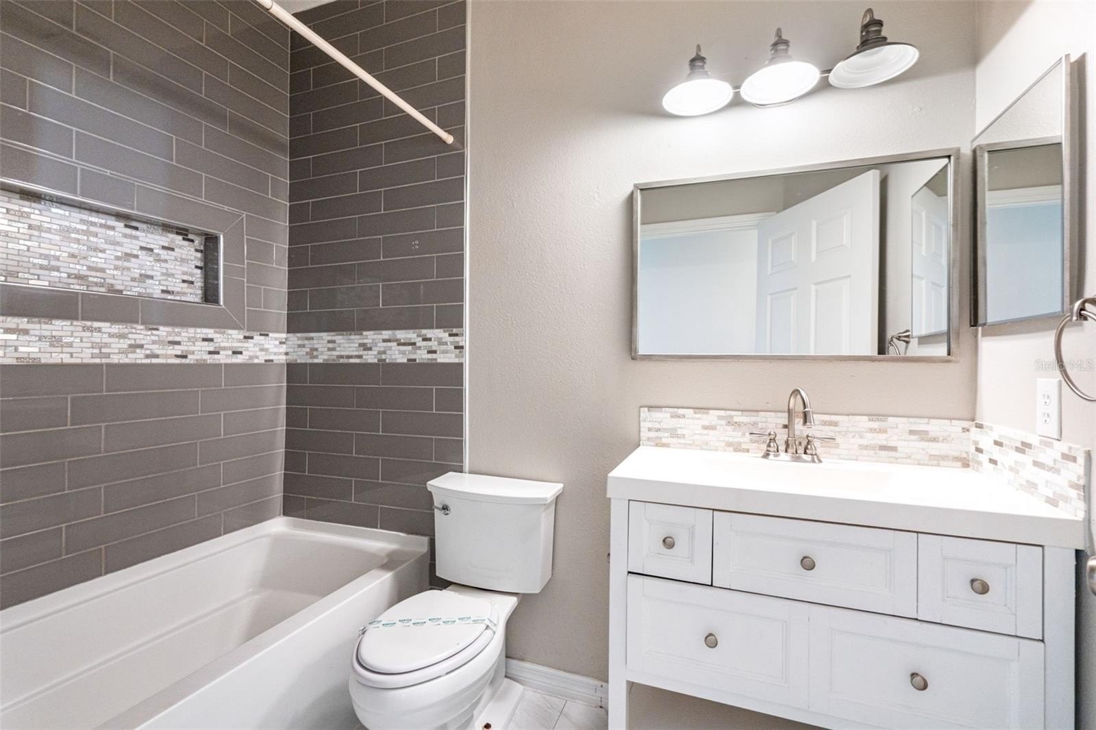 The expansive owner’s suite is a haven of sophistication with its walk-in closet and upgraded bathroom. Meanwhile, the two additional bedrooms are supported by another full, beautifully designed upgraded bathroom with a tub and shower, catering to family needs or visiting guests.