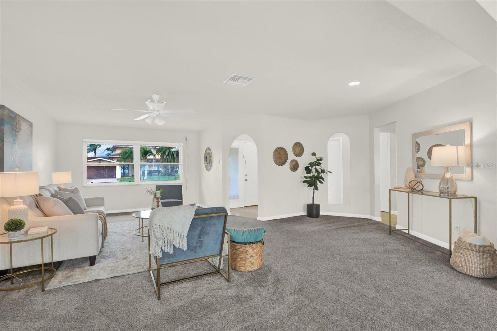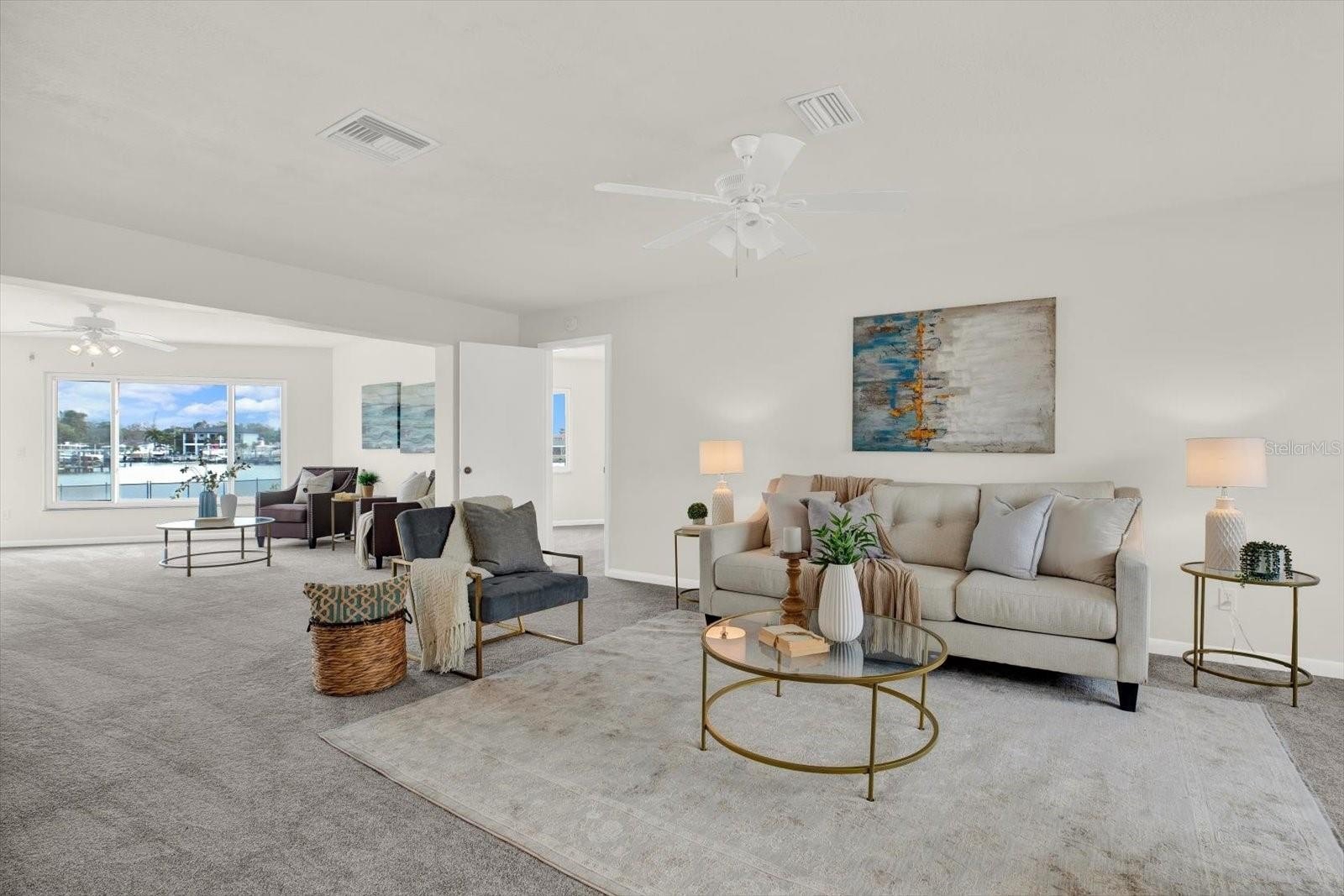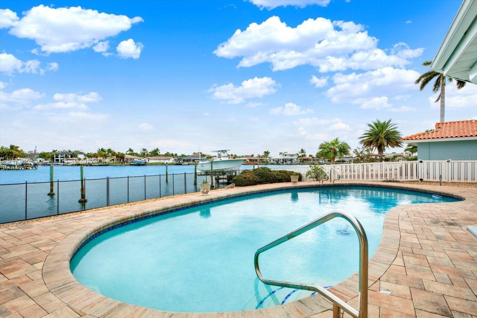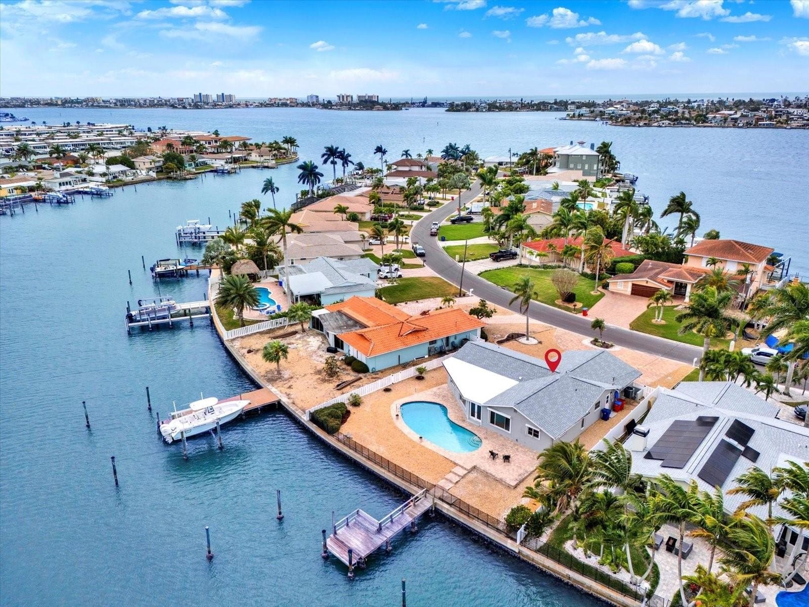 SOAK UP WATERFRONT LIVING WITH EXCEPTIONAL BOATING ACCESS IN THE HIGHLY SOUGHT-AFTER OAKHURST SHORES COMMUNITY OF SEMINOLE! This block construction home is positioned on a large nearly 1/4 acre lot with DEEP BOATING WATER AND NO FIXED BRIDGES (!), allowing for effortless access to the Intracoastal Waterway and a quick ride to the Gulf of Mexico. Previous owners comfortably moored a 52’ boat on the tie poles, and the seawall is in excellent condition—an increasingly rare combination for buyers seeking true boating functionality. Inside, the home offers a split bedroom floor plan with 3 bedrooms, 2 baths, and 1,829 square feet of thoughtfully laid-out living space, along with a 2-car garage. Major system updates provide peace of mind, including a NEW SHINGLE ROOF (2025), NEW HVAC SYSTEM (2020), A NEWLY REFINISHED POOL AND PAVER PATIO (2021), AND A WATER HEATER THAT’S JUST 3 YEARS OLD. The kitchen features granite countertops, while BRAND-NEW CARPET has been installed throughout the home, complemented by tile flooring in the kitchen and baths. The primary suite features water views, a walk-in closet, and an en suite bath with a NEWLY REMODELED SHOWER. Storm preparedness is well addressed with shutters or covers for every window and a hurricane-rated garage door. Outdoor living truly shines here, with a chlorine pool, expansive paver patio, safety fence along the seawall, and generous yard space—ideal for entertaining, al fresco dining, or unwinding after a day on the water. The existing dock is in place and ready for buyer’s updates. Professional remediation was completed following Hurricane Helene. Conveniently located on the mainland for easy access, yet just minutes from open water, this home is also biking distance to the beach, Publix, and Seminole City Center’s shops and restaurants. A rare opportunity to secure deep-water access, strong infrastructure, and an outstanding Seminole location.