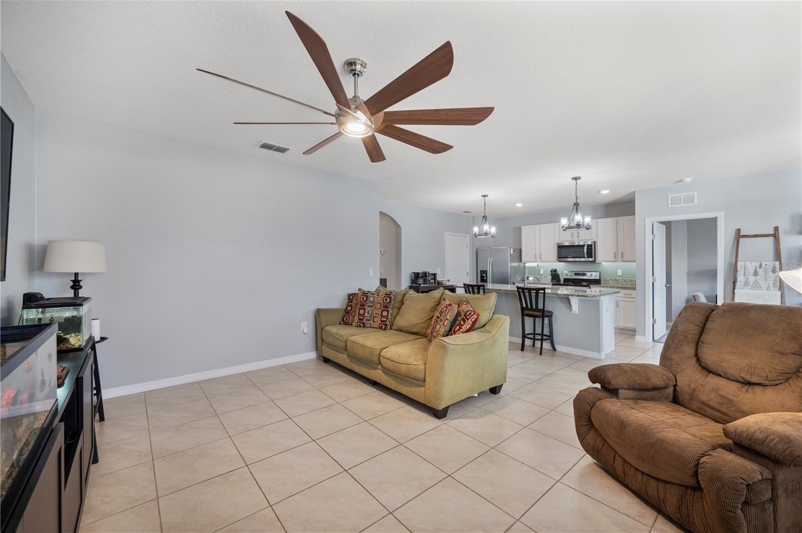 Welcome to this move-in-ready 3-bedroom, 2-bath corner lot home located in the highly desirable Lakes at Laurel Highlands community in Lakeland. Designed for both comfort and functionality, the open floor plan offers a seamless flow that makes everyday living and entertaining effortless.