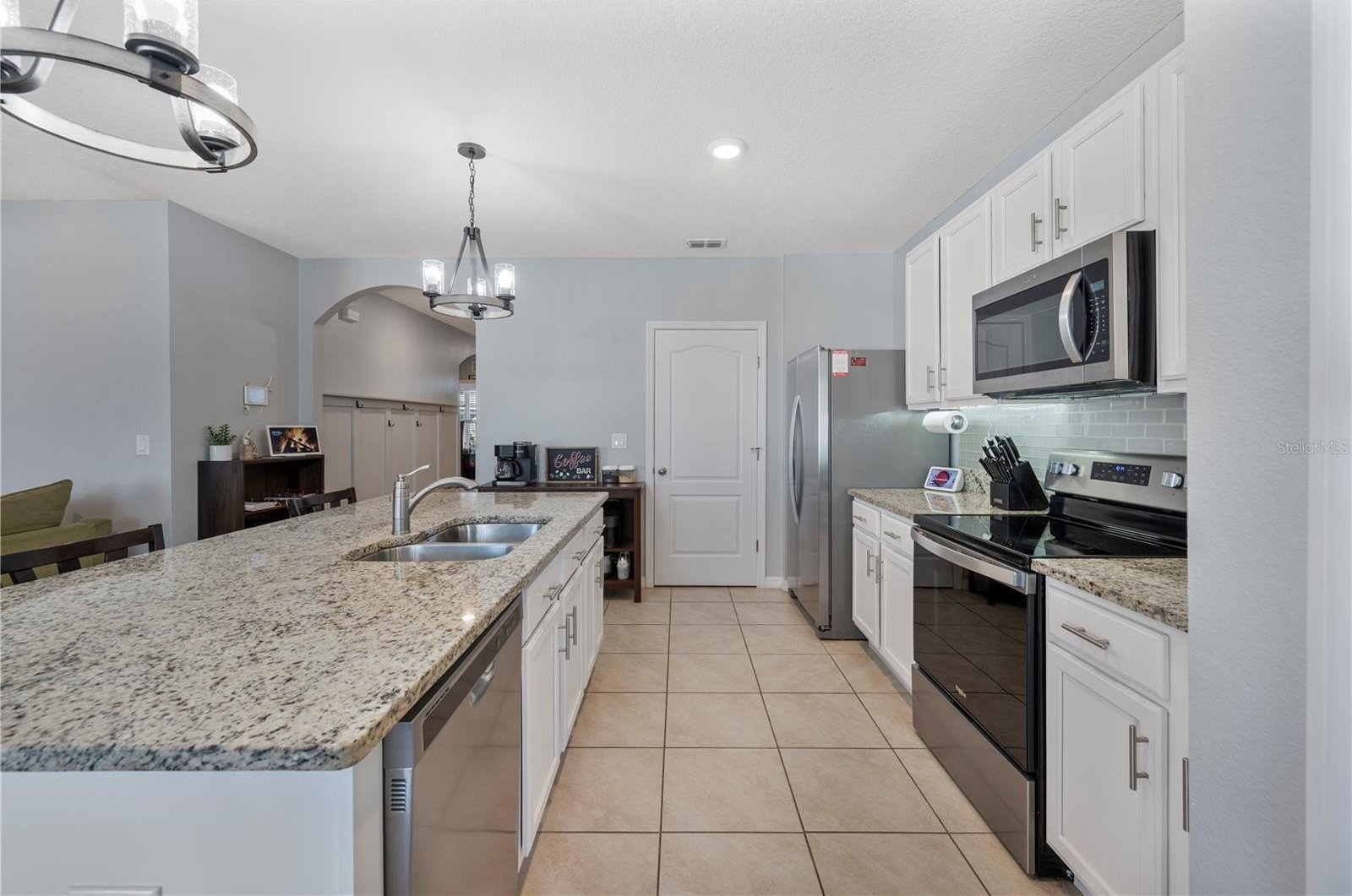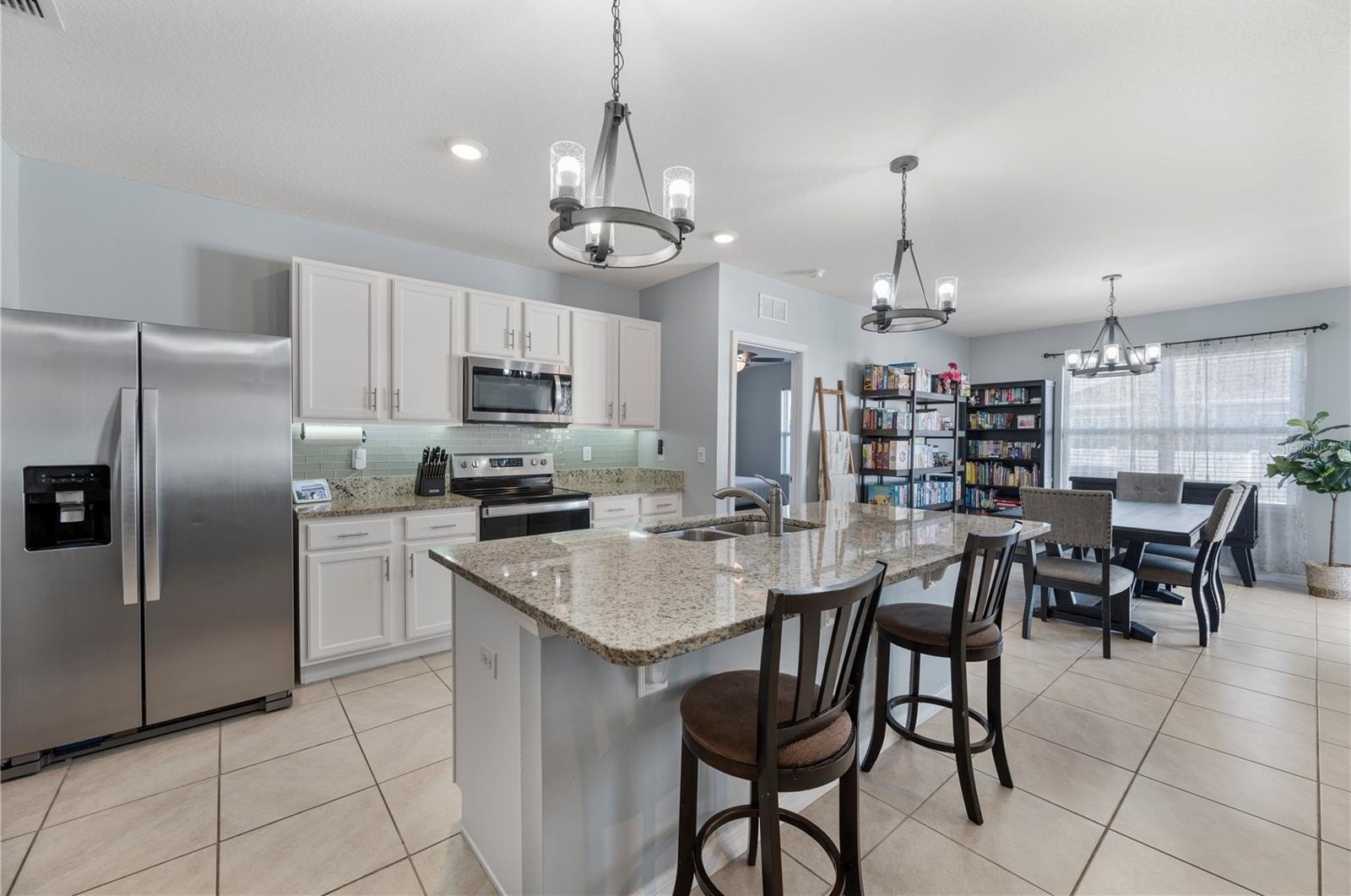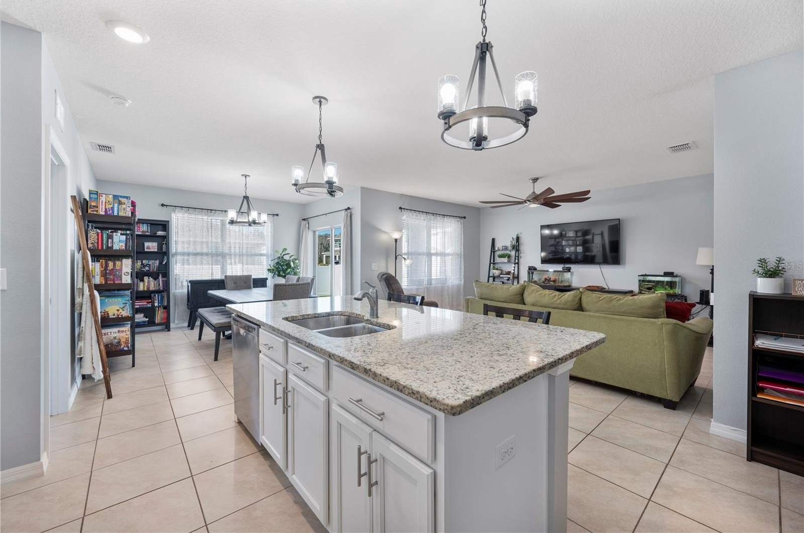 The kitchen is the heart of the home, featuring a large center island ideal for cooking, casual meals, and gathering with family and friends. Natural light fills the space, highlighting the tasteful finishes and creating a warm, inviting atmosphere throughout. The corner lot provides added privacy and a sense of openness, while the spacious interior offers room to relax and unwind.