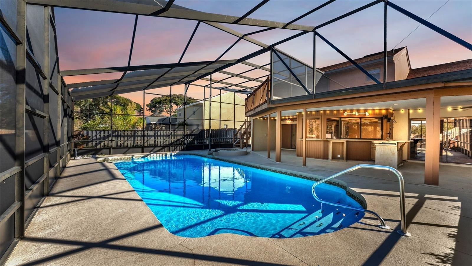 Outside, the pool and spa area serves as a private retreat, offering plenty of space to relax or entertain. The combination of warm interior finishes and resort-style outdoor living creates a home that feels both comfortable and welcoming, yet perfectly suited to Florida living.