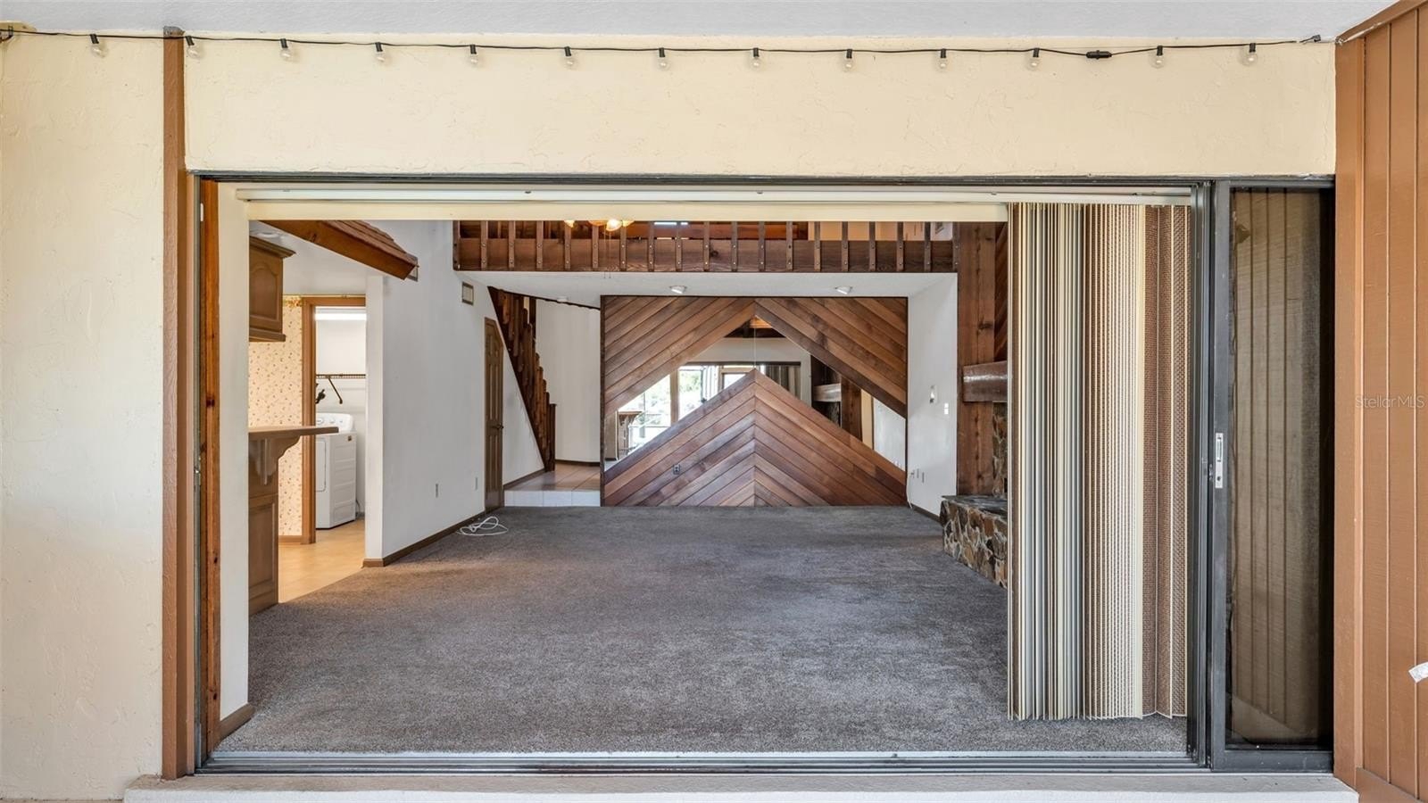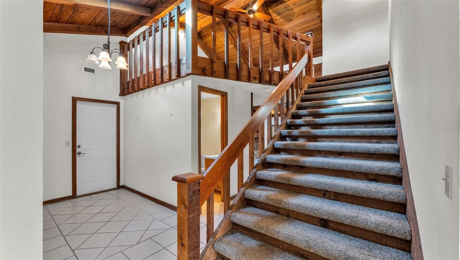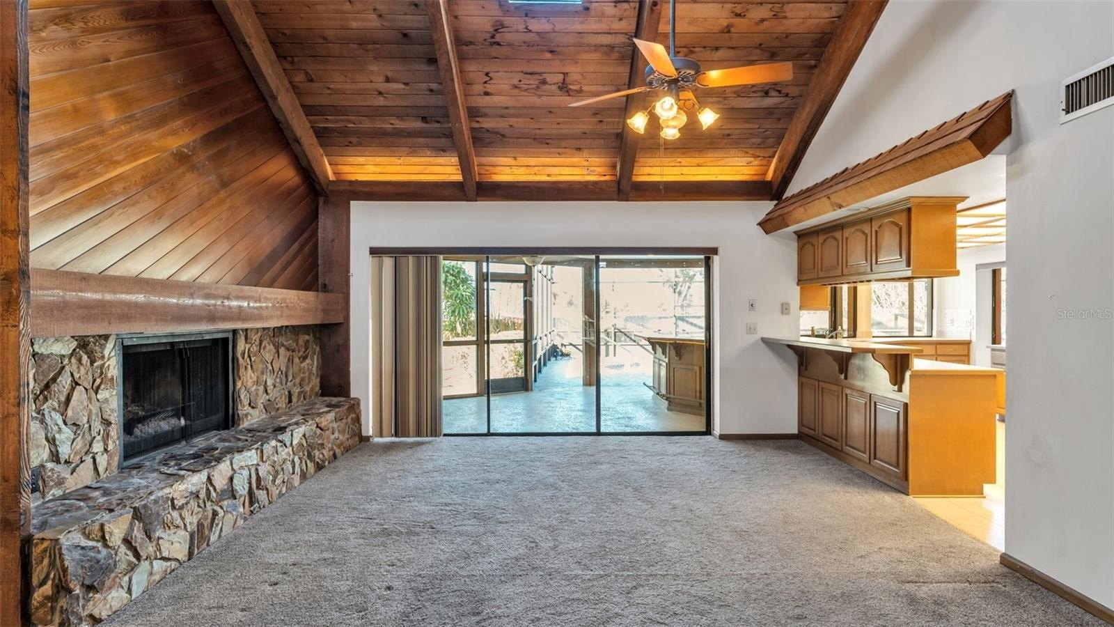 Step into this charming 1980s-inspired home, located in the desirable South Lakeland area, offering a warm, inviting feel reminiscent of classic Midwestern architecture. Rich wood elements and beautifully vaulted ceilings add character, depth, and a sense of craftsmanship throughout. As you move into the main living area, a striking wood-burning fireplace comes into view, anchoring the space and reinforcing the home’s cozy, timeless atmosphere.
