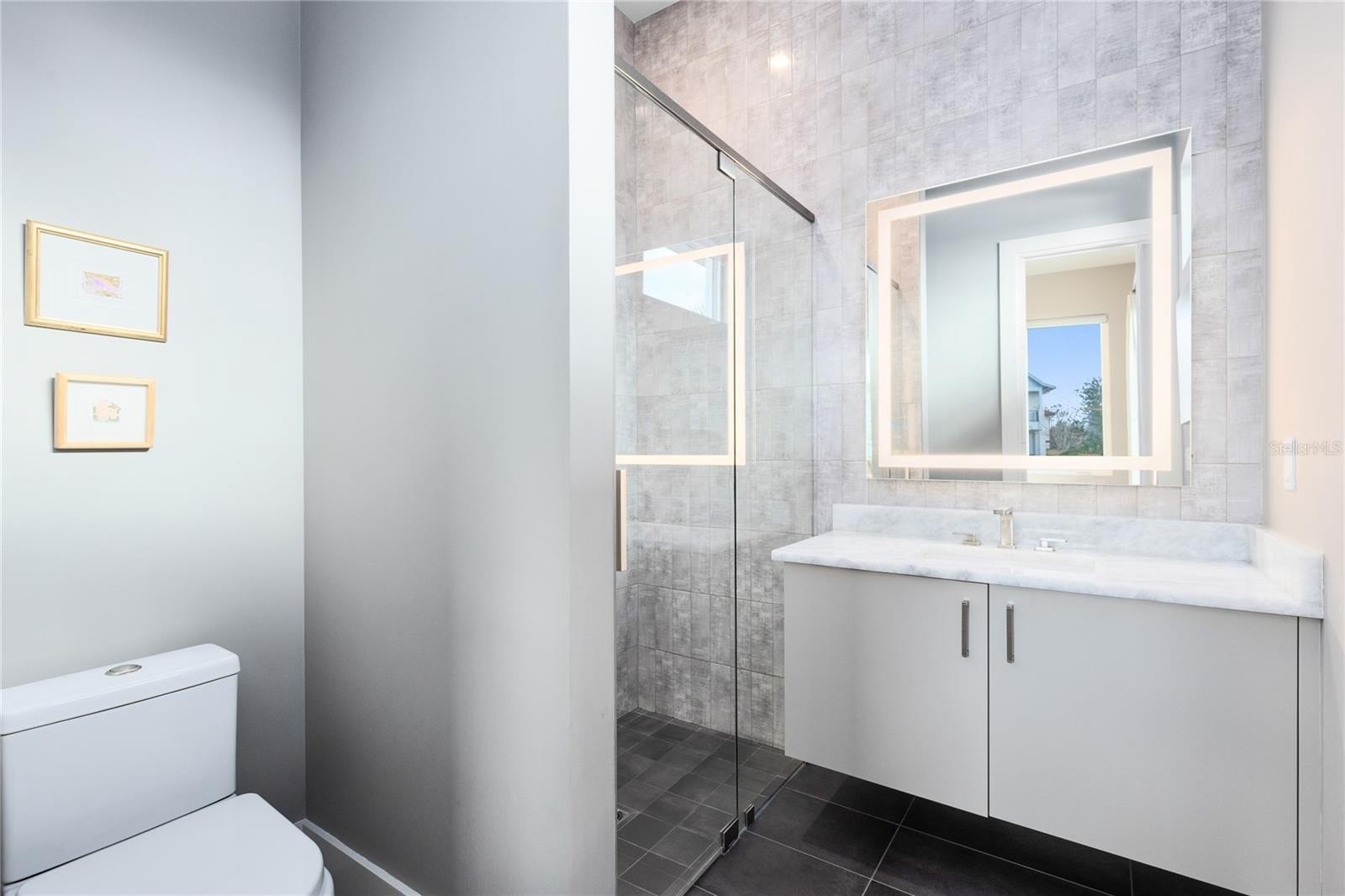 Upstairs, a spacious loft opens to a covered balcony overlooking the pond. The primary suite is a private sanctuary featuring its own balcony, spa inspired bath with freestanding soaking tub, glass enclosed walk in shower, dual floating vanities, and a custom walk in closet. A dedicated tankless water heater serves the primary suite and kitchen.
