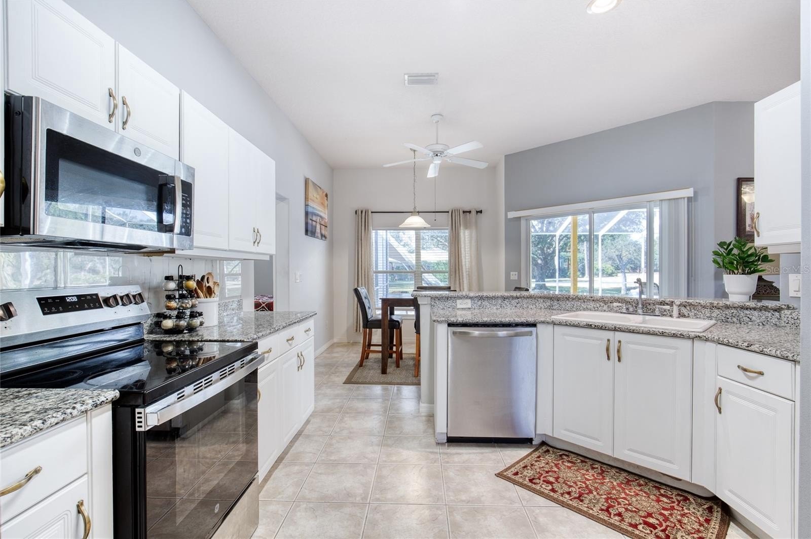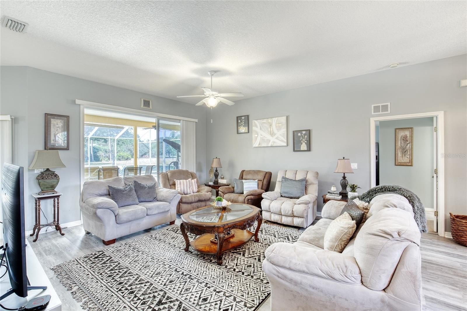 Beautiful 3-bedroom, 2-bath Pool Home with a 2-car garage, situated on an oversized lot in the highly desirable Ormond Lakes community. From the moment you arrive, you'll appreciate the meticulously manicured landscaping and fresh exterior paint. Inside, the expansive split-floor plan offers volume ceilings and an open, airy feel throughout. The eat-in kitchen features new granite countertops and backsplash, an expansive breakfast bar, and a dedicated pantry. The primary suite is a true retreat, highlighted by a coffered ceiling, his-and-her closets, a walk-in shower, and a double-sink vanity. Two well-appointed guest bedrooms are complemented by a remodeled guest bathroom with a walk-in shower. Sliding glass doors from the living area lead to a generous 350+ sq ft covered lanai overlooking the fully screened pool enclosure. A large .71-acre green space abuts the rear of the property, offering added privacy and peaceful views. Roof 2024 / AC 2001 / HWH 2001. Recent upgrades include LVP flooring in the living room and a new primary bath vanity. See full upgrades list for additional details. Ormond Lakes features several miles of walking and biking sidewalks, newly updated clubhouse, tennis, fishing pier, community pool, easy access to I-95, and is located several minutes from Tomoka State Park. Square footage from tax rolls. All info intended to be accurate but can't be guaranteed.