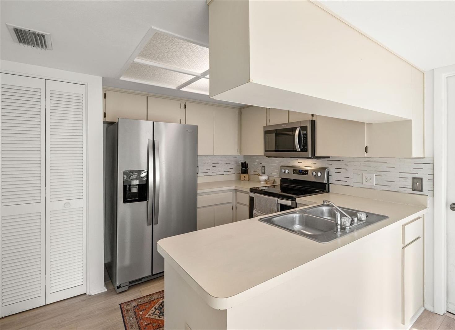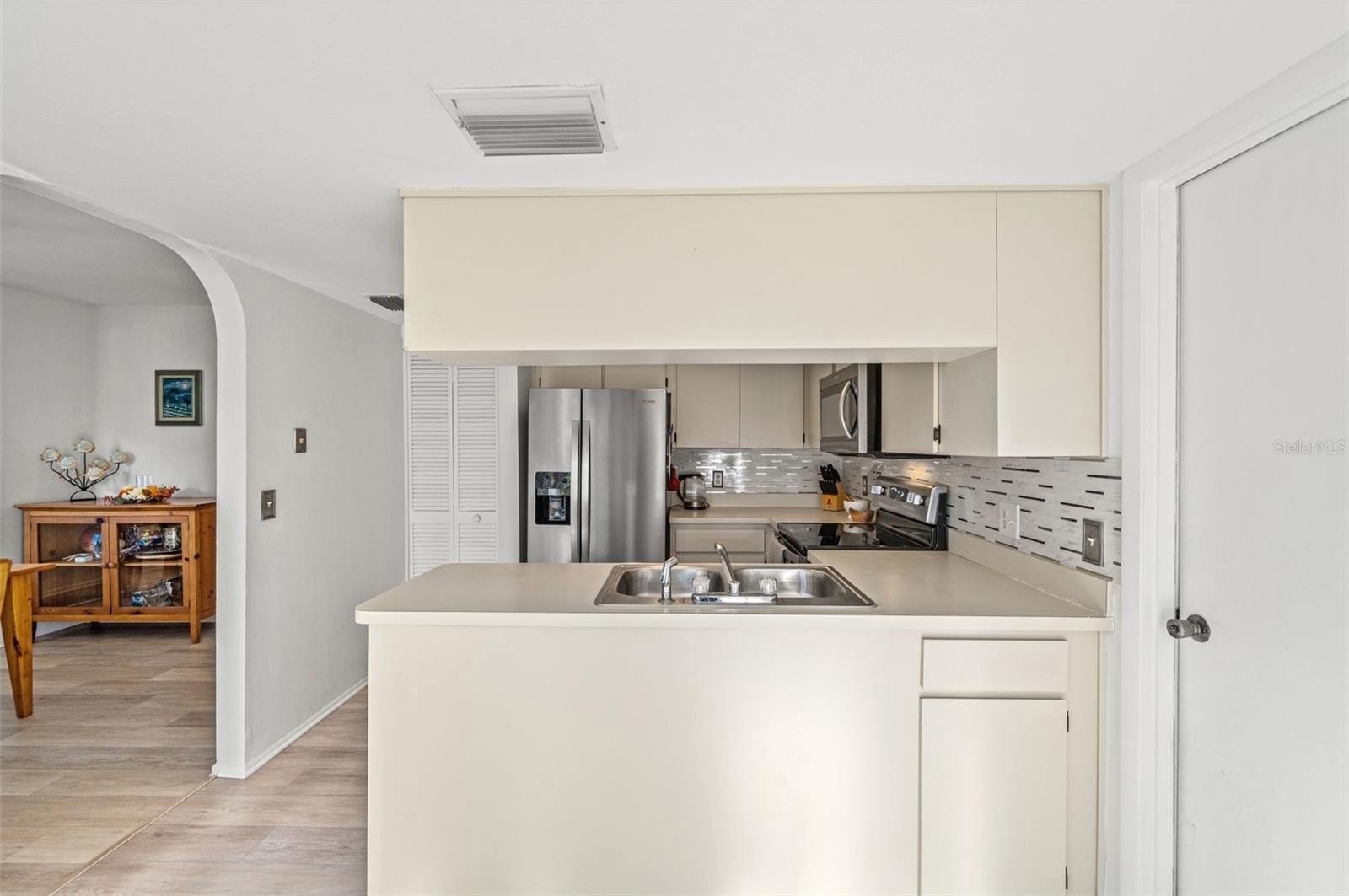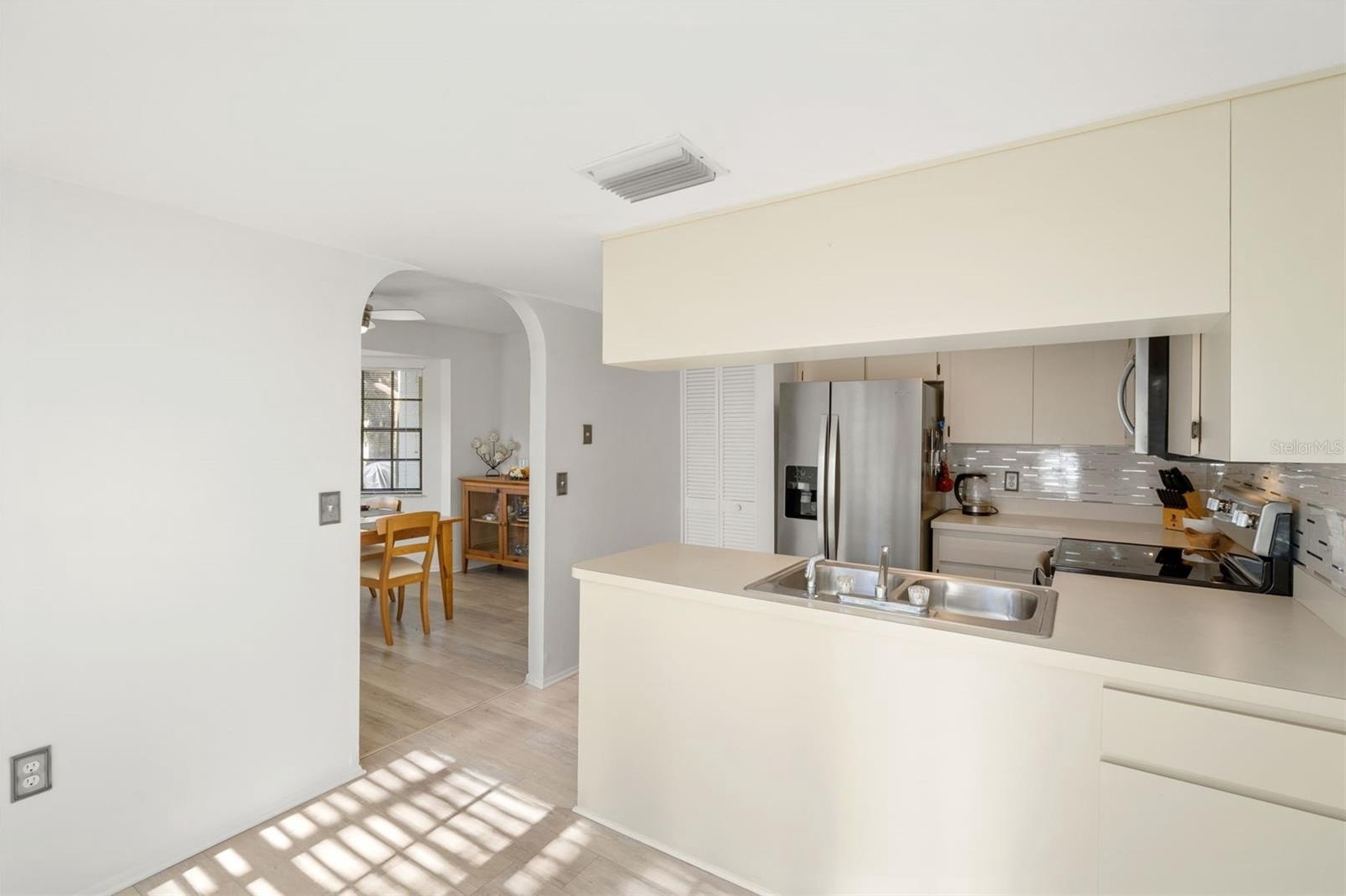 Desirable stand-alone maintained villa located in a private cul-de-sac within award-winning Timber Pines. A welcoming screened front porch and double-door entry lead into a light and bright living room and dining room combination featuring an open-concept design with vinyl flooring throughout. Popcorn ceilings have been removed, enhancing the home's clean, updated feel. The kitchen offers newer appliances, plantation shutters, a pantry, and a dine-in kitchen nook—perfect for enjoying views of the outdoors. The spacious guest bedroom is adjacent to a full bath with tub/shower combination, while the primary suite includes a private bath with walk-in shower. An extended driveway provides ample guest parking. Outdoor living is easy with a rear concrete slab, ideal for grilling. This well-maintained village features its own geothermal pool and pavilion and is one of the few villages in Timber Pines that allows two dogs. Reside in one of Florida's premier active adult communities with access to four golf courses, tennis and pickleball courts, clubhouse, fitness center, pools, full-service restaurant, Dog park, 24 hour security, gated and guarded, Performing Arts Center, Resident Activity Center, 2 Geothermal Pools, Billiards Center, Wood Shop, Arts and Crafts room, and over 100 social clubs,so many Activities!! Spectrum Cable TV, 2 Boxes, and highest speed internet included in HOA. ?? Don't miss your chance to make this home your own in Timber Pines—where comfort meets community. Schedule your private tour today!