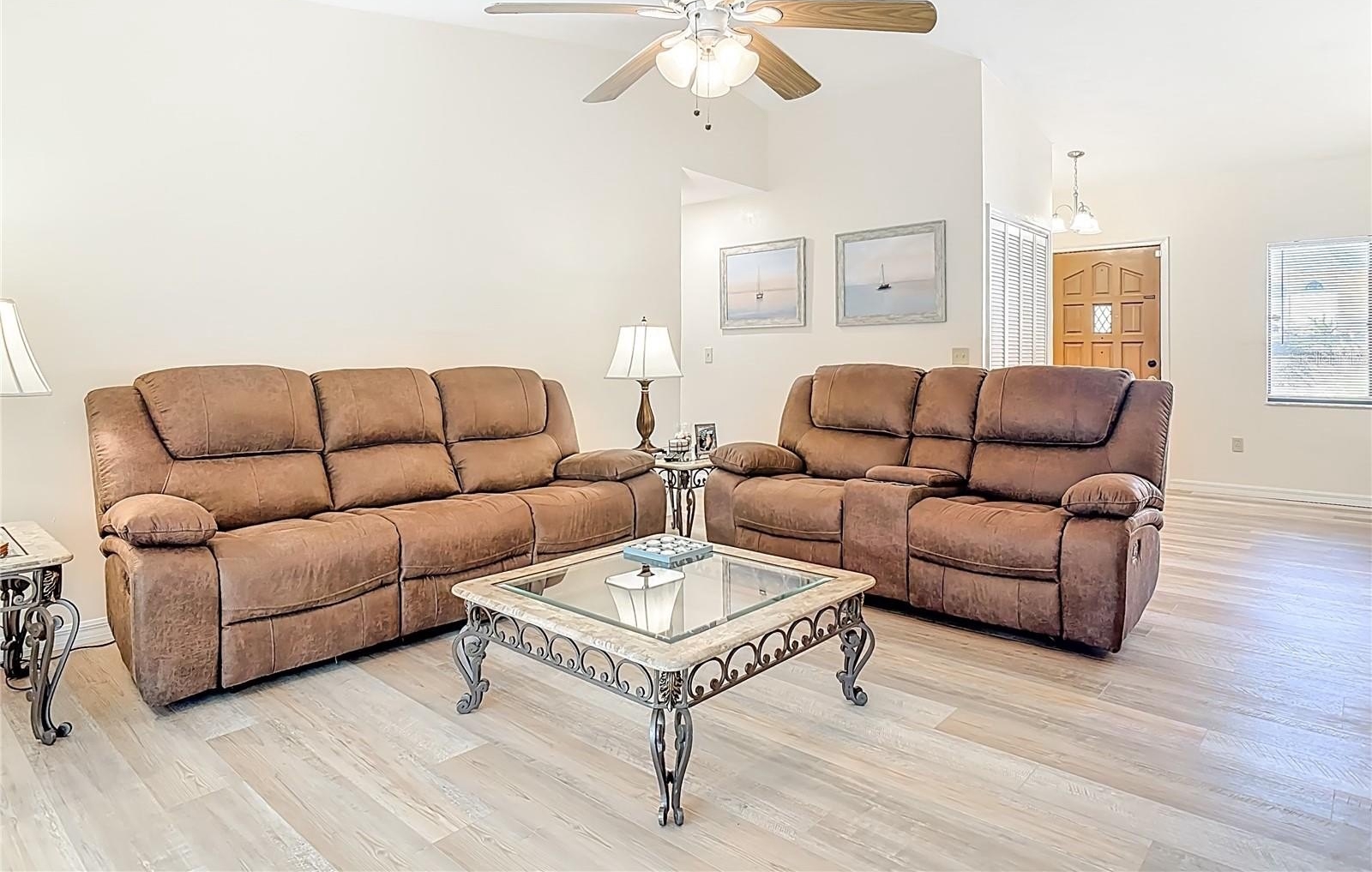 Discover this beautifully updated ranch-style home, where vaulted ceilings and natural light create an inviting, airy atmosphere. The heart of the home features a modern kitchen with solid stone countertops, overlooking a spacious living area—perfect for entertaining. The primary suite serves as a private retreat with an updated ensuite, while guest rooms feature generous walk-in closets. Outside, the property is designed for convenience and durability, from the paver driveway and epoxy garage to the protected irrigation well pump. With the beach just a short walk away and plenty of space for your outdoor toys, 4761 Riverglen Blvd offers a lifestyle of pure relaxation.