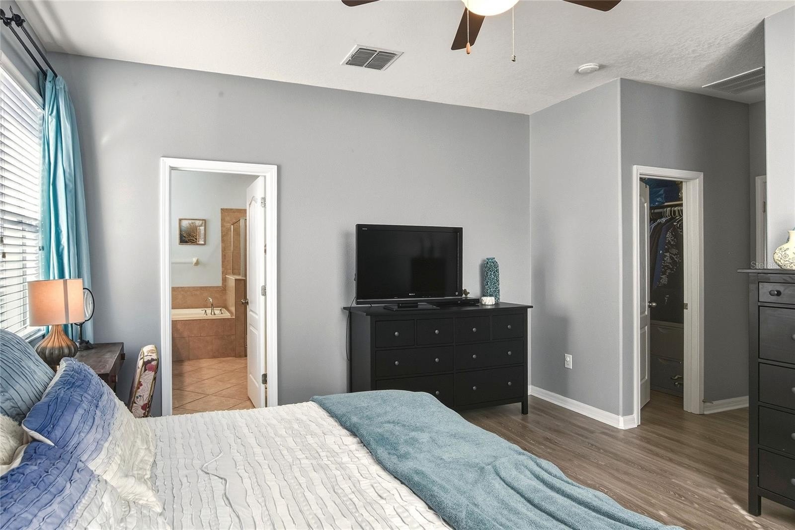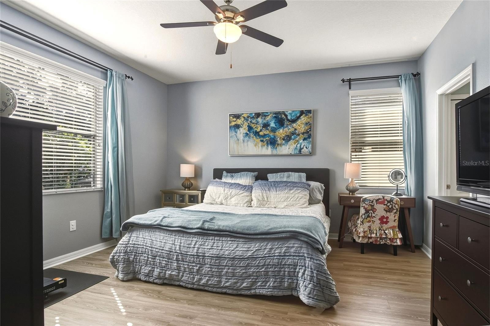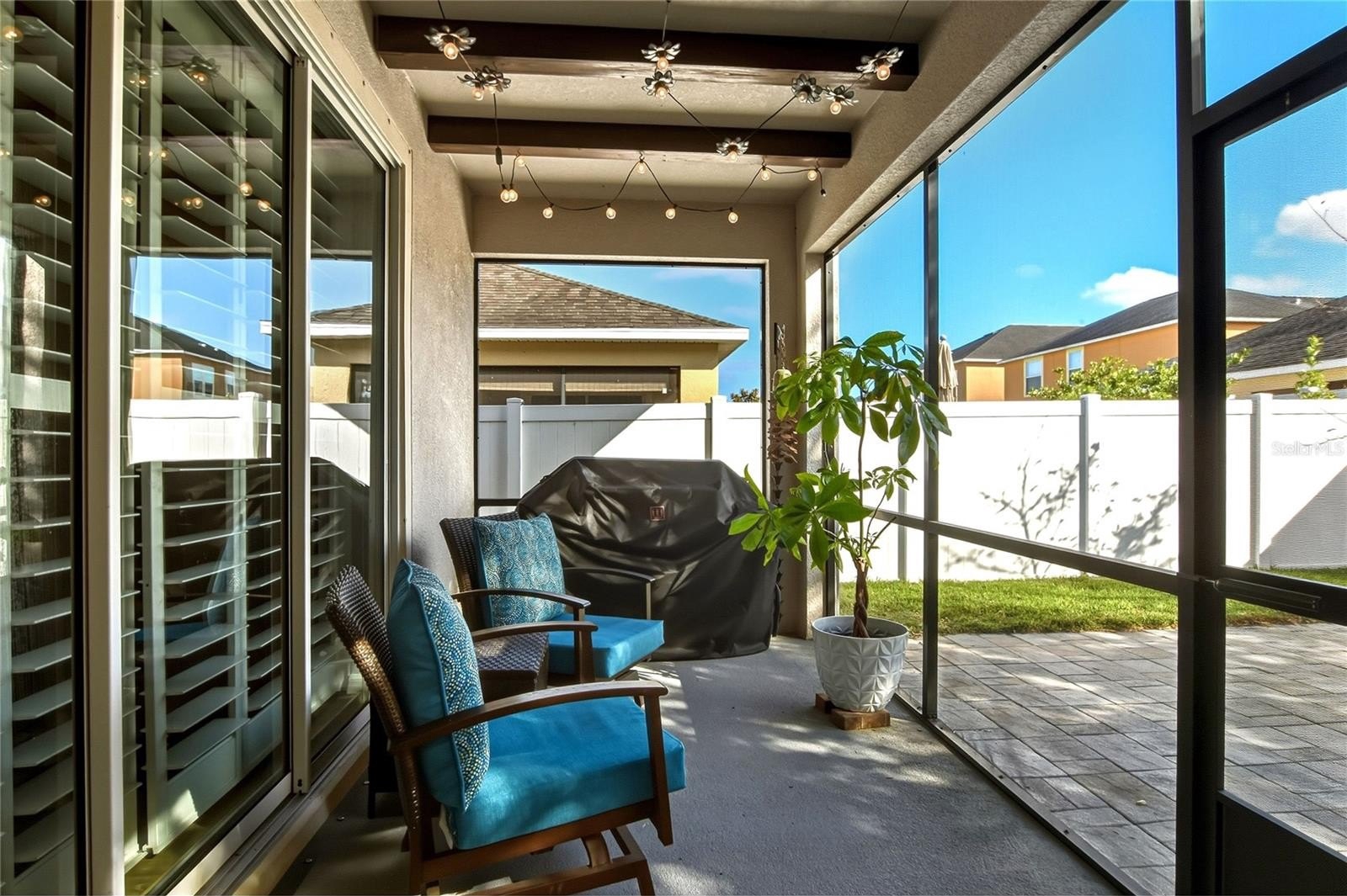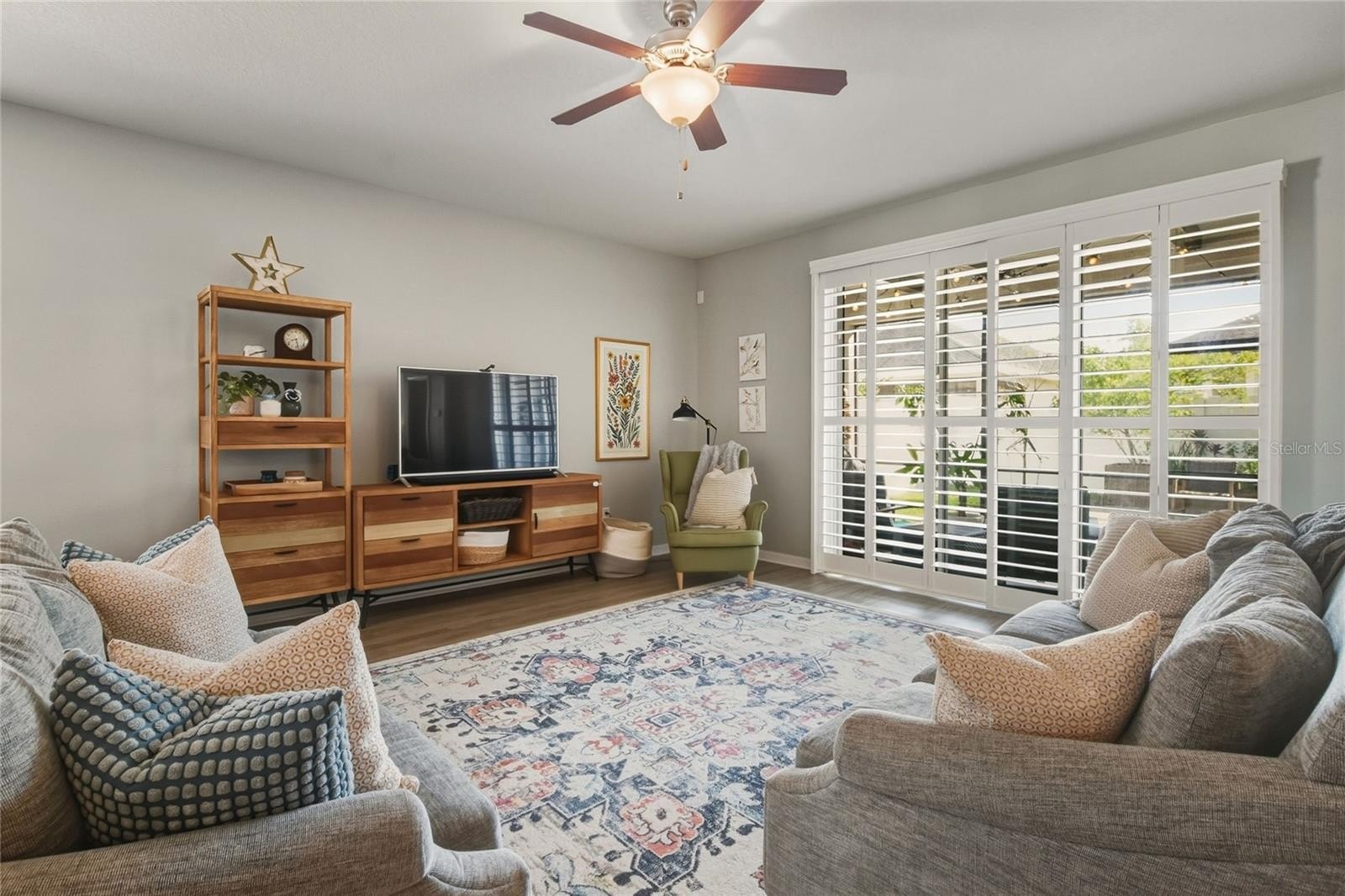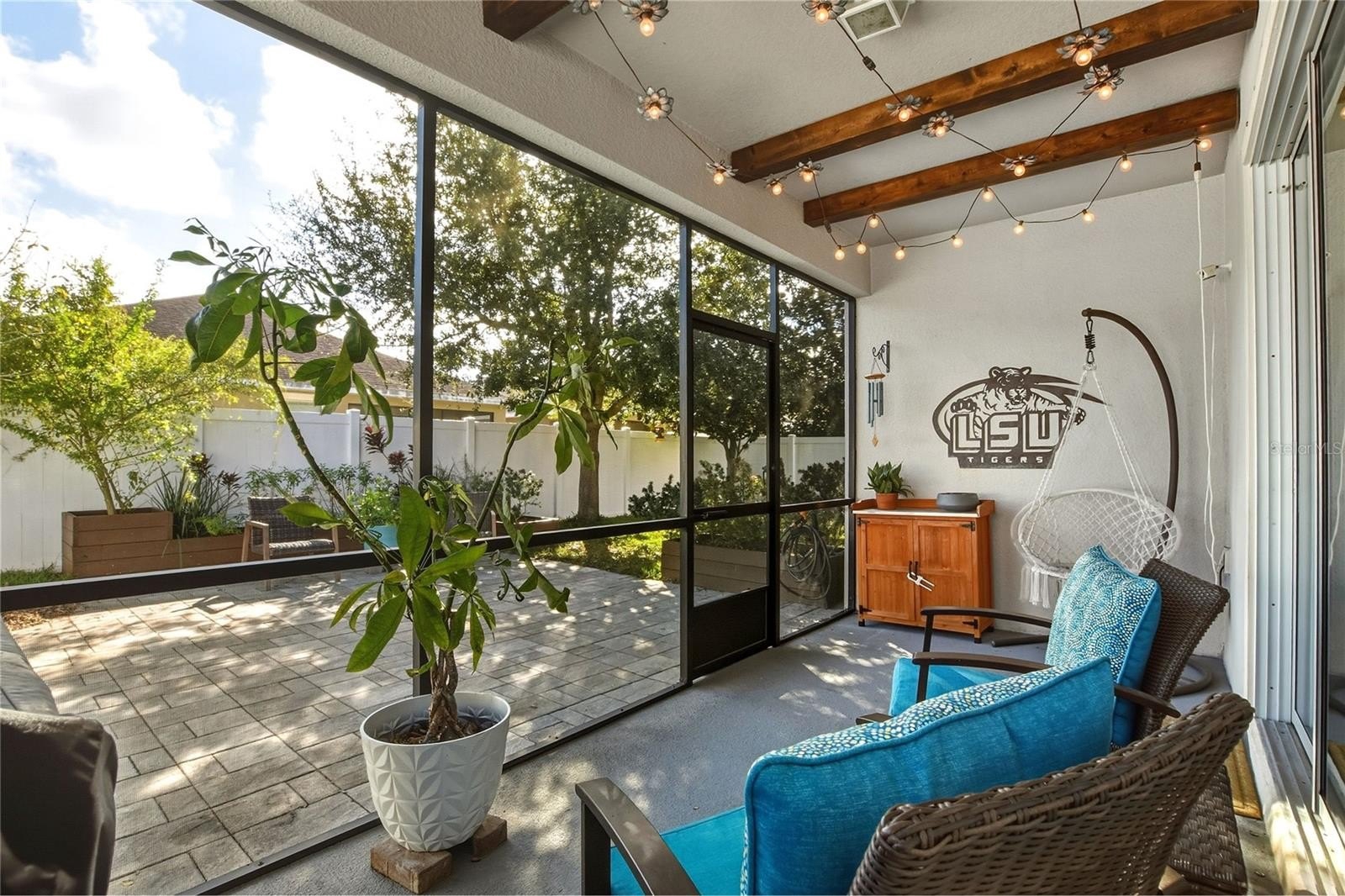 Ballentrae is a quaint community offering amenities such as a community pool and playground. This 4-bedroom, 3-full-bath home features laminate wood flooring throughout the main living areas and a bright, open layout filled with lots of natural light. The secondary bedrooms and full bath are located at the front of the home, offering privacy from the main living areas. A guest ensuite situated in the middle of the home provides an ideal layout for visitors or multigenerational living. The primary suite, tucked away for added privacy, features a dual-sink vanity, garden bath, and private water closet. The kitchen showcases 42" staggered cabinetry with trim detail, a pantry, and opens seamlessly to the dining and family rooms, making it perfect for everyday living and entertaining. Step outside to a good-sized, fully fenced backyard with a screened lanai, extended pavered patio, and planting boxes—ideal for relaxing or outdoor gatherings. Call today for your private showing!