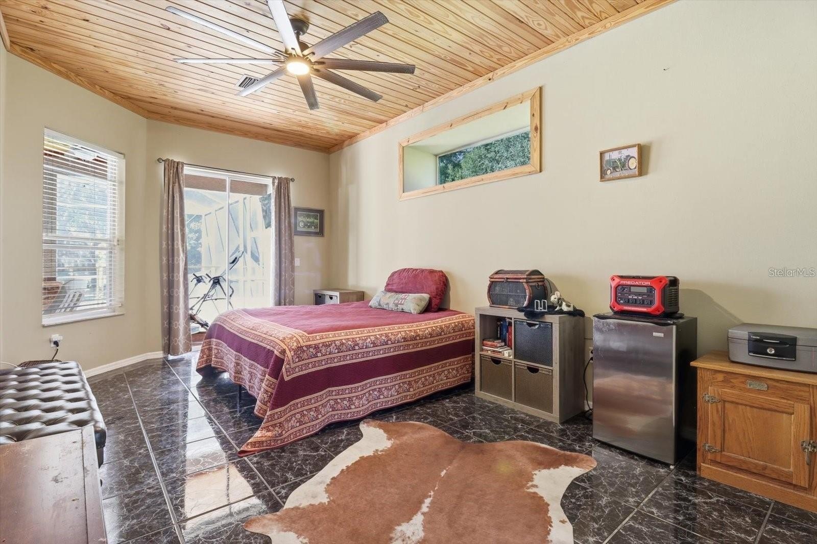 Beautifully maintained 3-bedroom, 2-bath, 2-car garage pool home nestled on a private .5-acre fenced lot with mature trees, including citrus. Pride of ownership shows with thoughtful upgrades where it matters most—kitchen, baths, and tongue-and-groove wood ceilings throughout. The kitchen features ample soft-close cabinetry, granite countertops, and opens seamlessly to the family room and pool area. Solid wood flooring accents the main living spaces, while pocket glass sliders create effortless indoor-outdoor living leading to your backyard retreat.