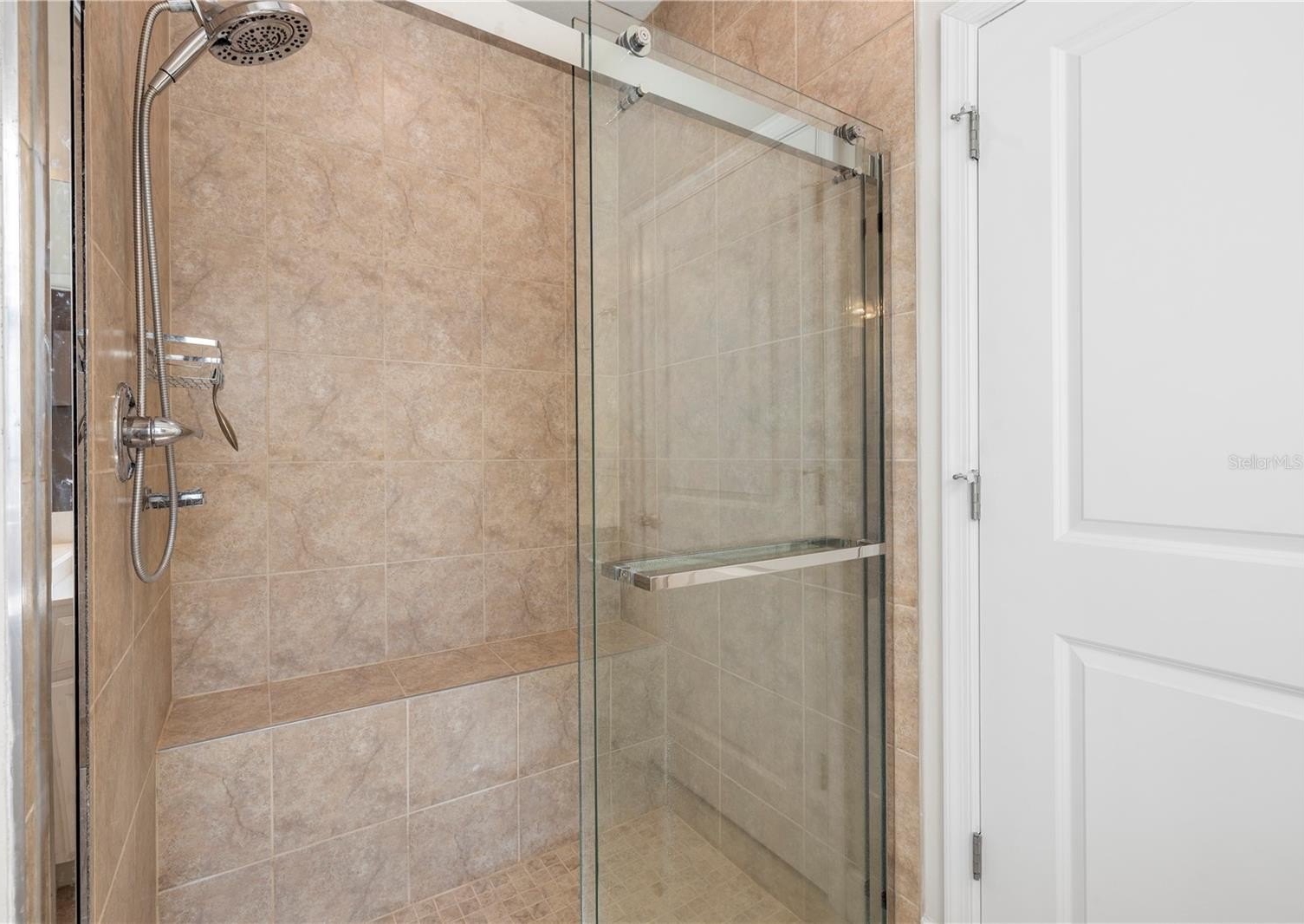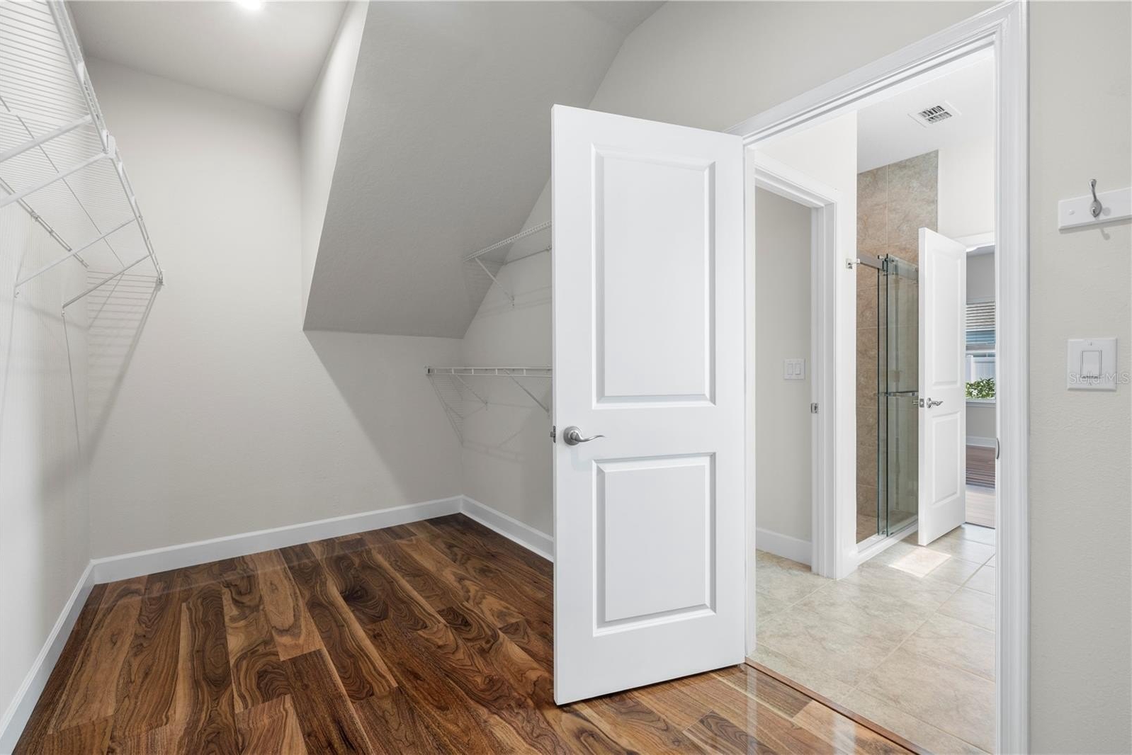 The primary suite is tucked away at the back right of the home, providing privacy and comfort. It features large windows that bring in abundant natural light, along with a spacious en suite bathroom complete with a large walk-in shower, double-sink vanity, makeup vanity, separate water closet, and a generous walk-in closet accessed through the bathroom.