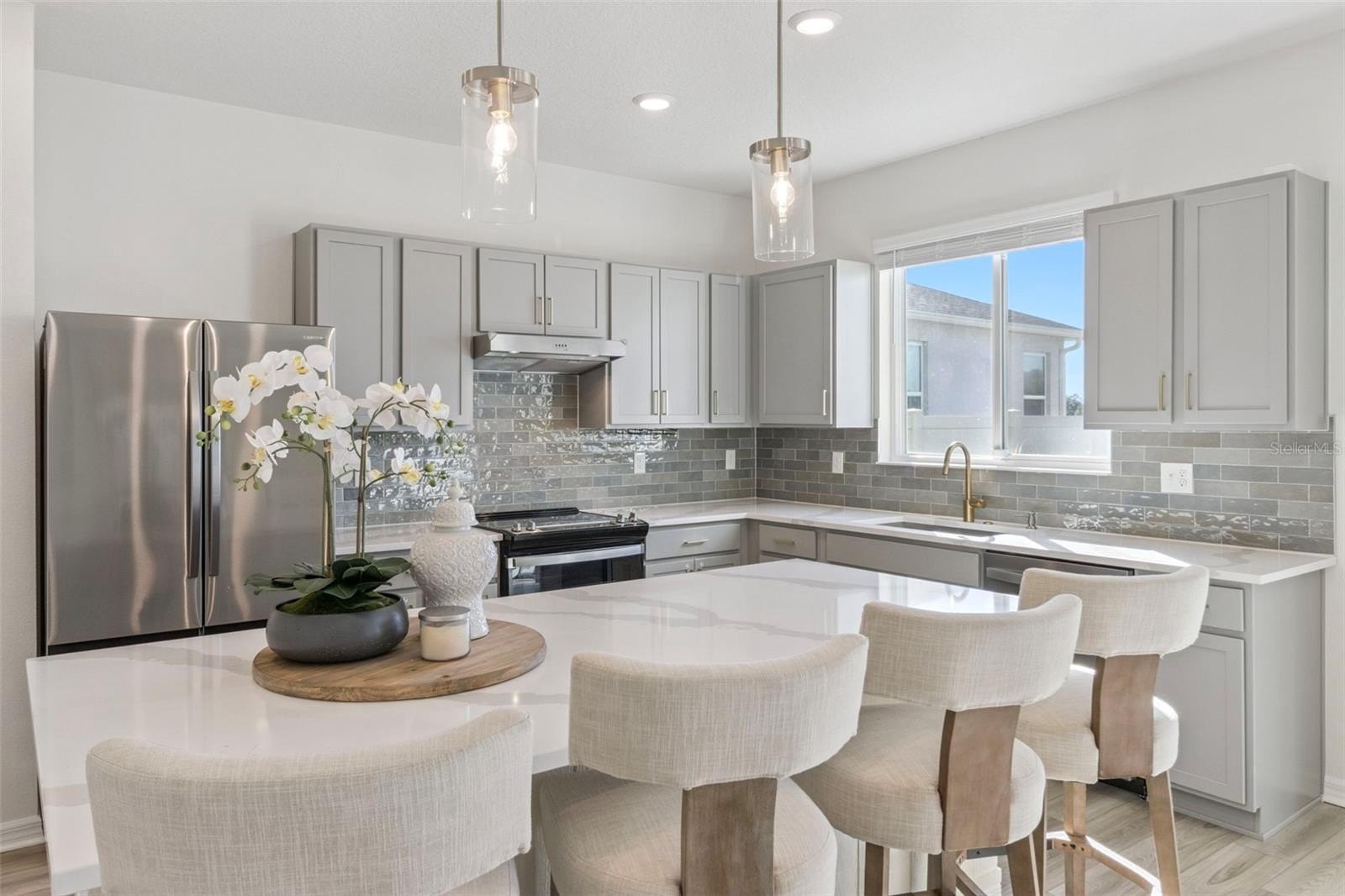 Additional upgrades include a whole-home water filtration system, security system, and a hybrid heat-pump water heater that efficiently heats water while cooling the garage.