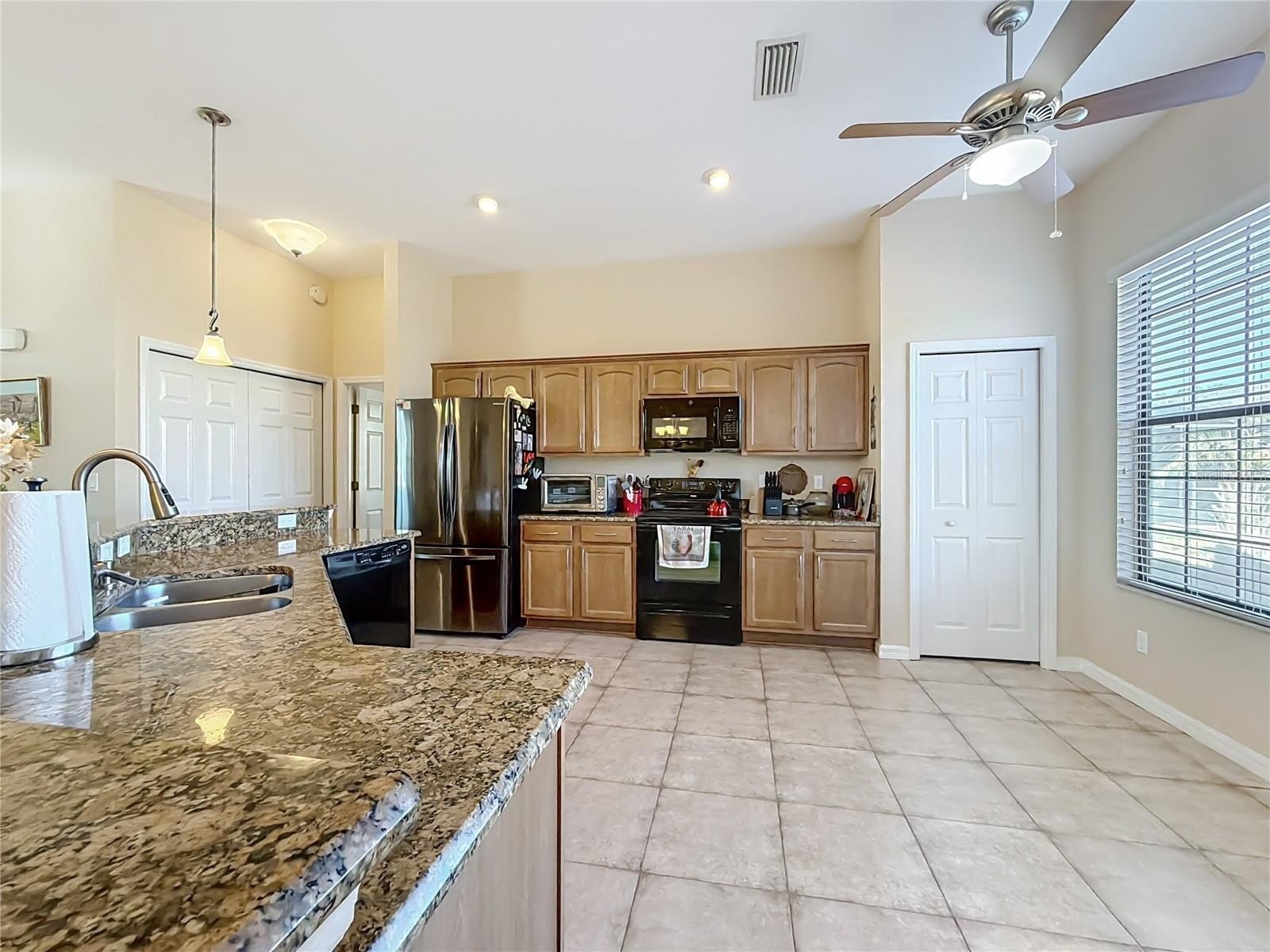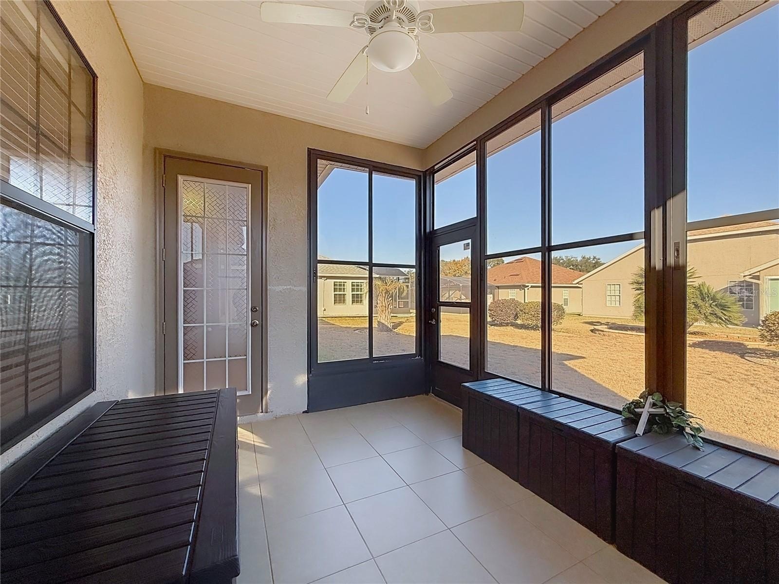 Welcome home to Stonecrest, a sought-after 55+ gated golf cart community known for its resort-style amenities, multiple sparkling pools, and an unbeatable location just 2 miles from The Villages. This lovely extended Lilly model, offers 3 bedrooms, 2 bathrooms, and an enclosed lanai, all thoughtfully designed for comfort, privacy, and entertaining. . Inside, you’ll love the open-concept layout that welcomes you in with views of the living room, dining area, and kitchen—perfect for gatherings or everyday living. The kitchen is both stylish and functional with granite countertops, a garbage disposal, and luxury pendant lighting. Most of the main living areas feature luxury laminate flooring, while the bedrooms are carpeted, and the bathrooms and lanai boast ceramic tile. Elegant arched hallways add character and charm throughout the home. The primary suite is tucked away for privacy and features a spacious walk-in closet and a beautiful Roman shower in the en-suite bath. On the opposite side of the home, you’ll find two guest bedrooms with a full guest bathroom conveniently located between them—ideal for visitors or a home office setup. This split-bedroom floor plan offers both flexibility and privacy. Enjoy Florida living with plenty of outdoor space and no kissing lanai, along with lovely curb appeal and picturesque palm-lined streets throughout the neighborhood. The garage is accessible from both the interior and exterior of the home. Stonecrest is ideally located near shopping, grocery stores, restaurants, banks, gas stations, medical facilities, and entertainment—many accessible by golf cart. And when you want even more fun, you’re just minutes away by car from The Squares, offering nightly live music, dining, and shopping This home truly offers the best of comfort, convenience, and community.