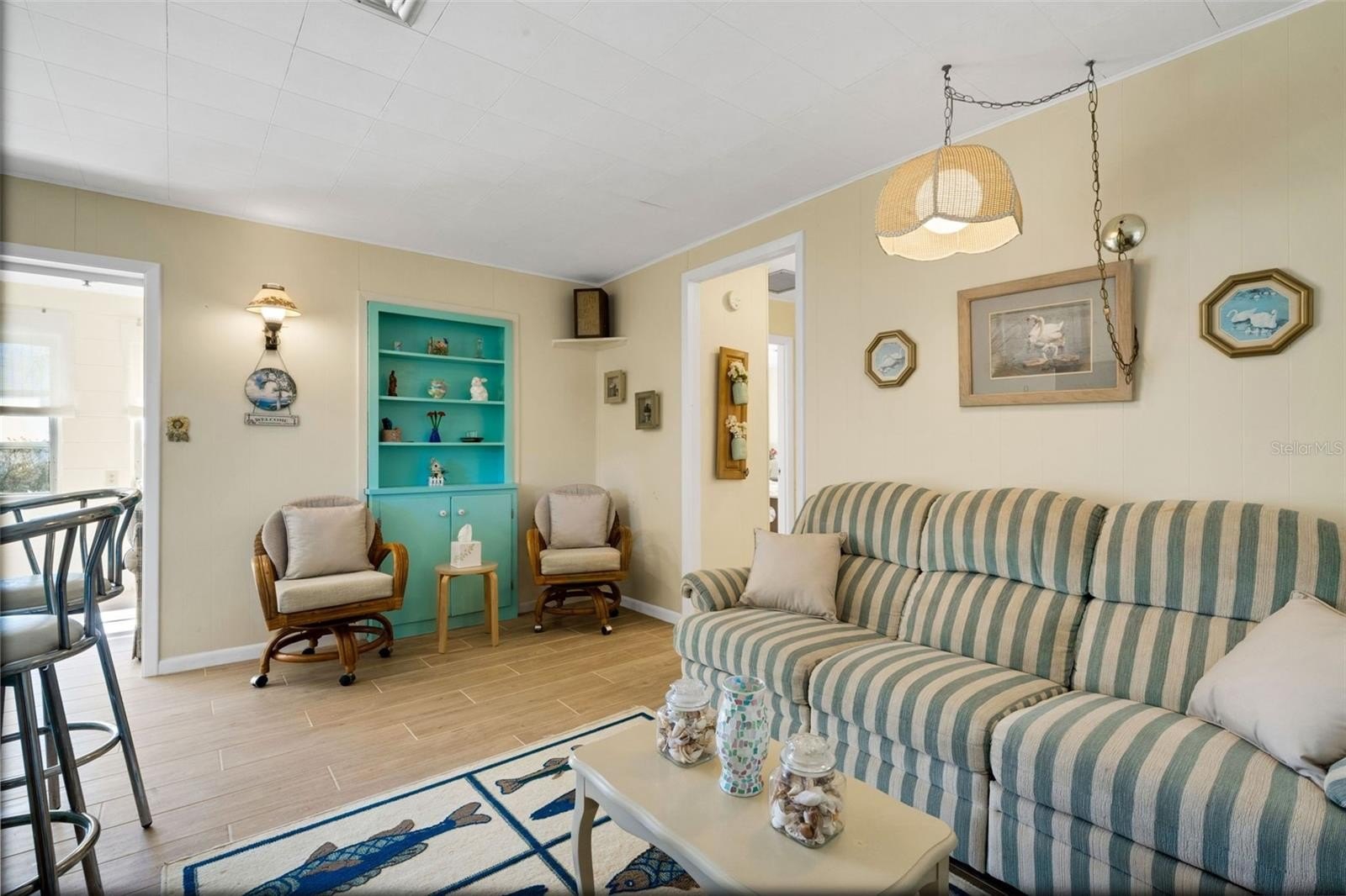 The living room and kitchen flow together seamlessly, creating an easy, open layout for everyday living. Just beyond, a delightful Florida room becomes the star of the home, offering breathtaking lake and sunset views—an ideal spot to relax, unwind, or entertain while taking in the natural beauty that surrounds you.