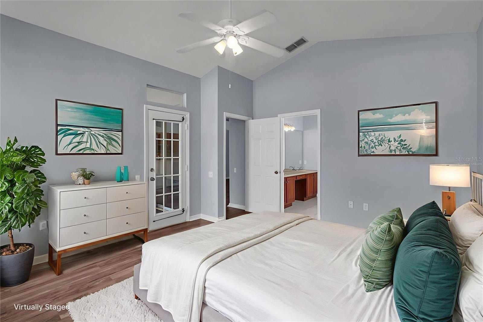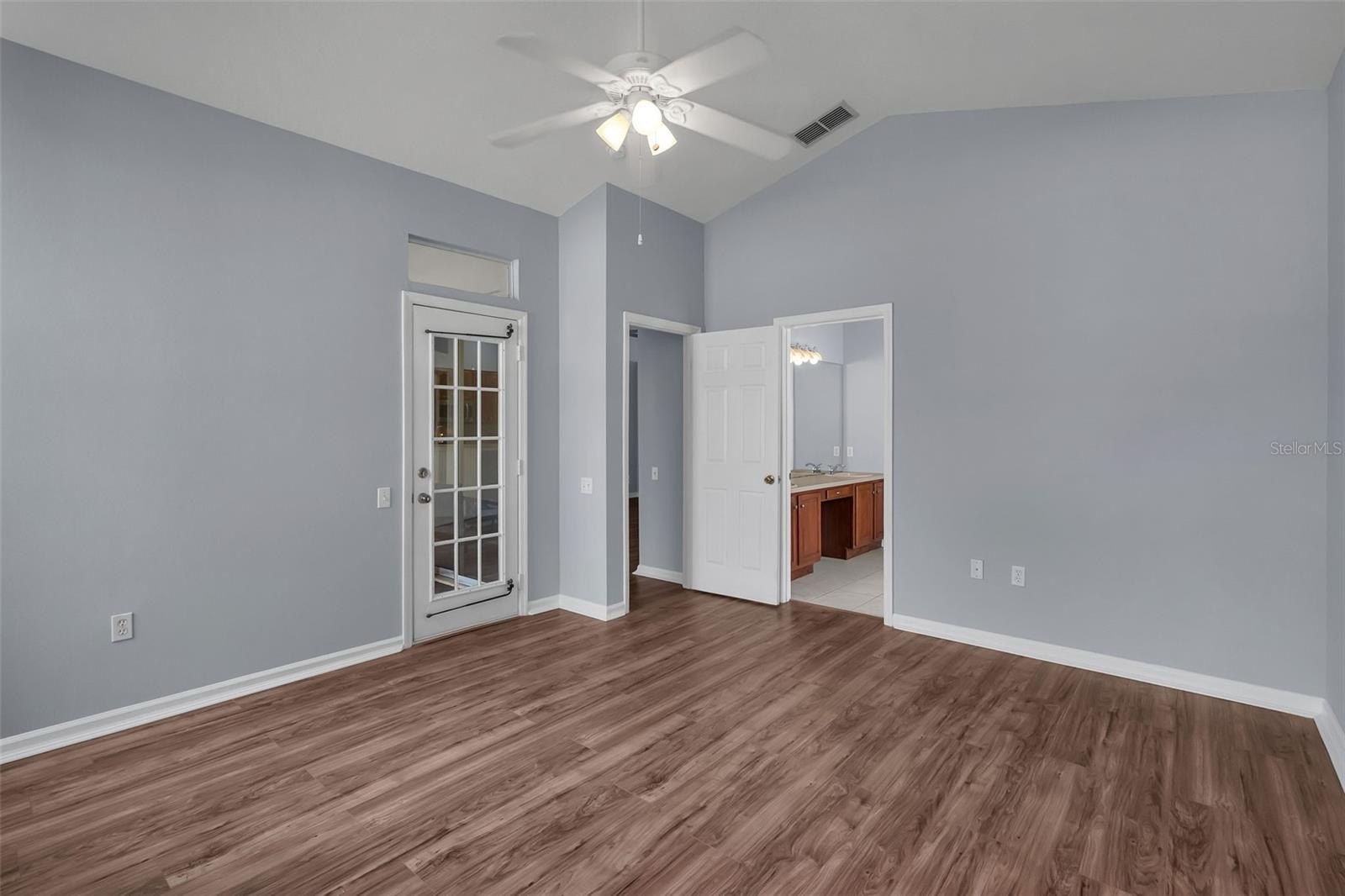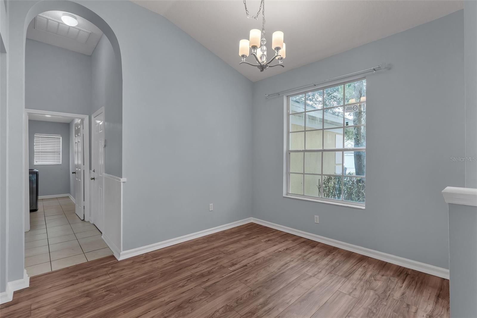 A formal living and dining area welcomes you at the foyer. The updated kitchen is ideal for cooking and entertaining, featuring ample counter space and newer appliances. The kitchen and breakfast nook open to a spacious family room with high ceilings, creating an inviting setting for gatherings. Both the sliding glass doors and breakfast nook french doors extend your living space to a gorgeous screened-in lanai, perfect for relaxing or entertaining.