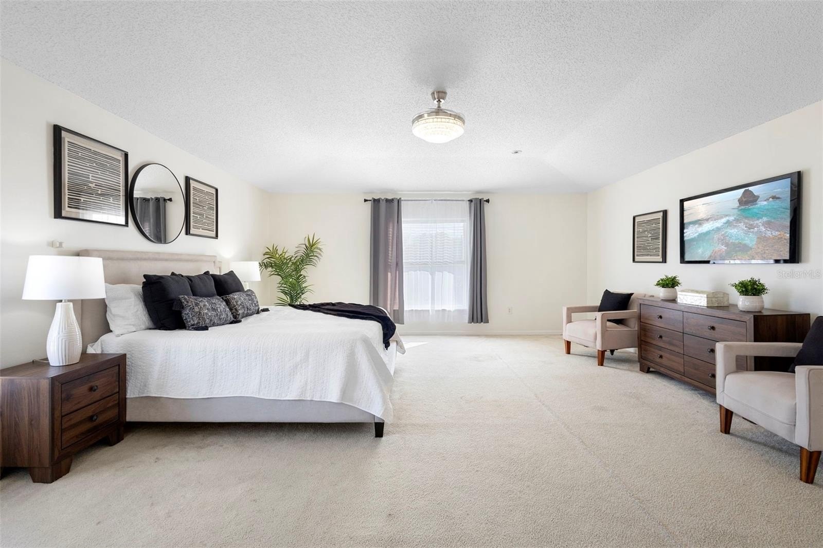 This large single-family home in Deltona features a flexible floor plan with multiple living areas, generously sized bedrooms, and spaces ideal for family gatherings, visiting relatives, or working from home. An open and expansive layout between the kitchen and family room creates a natural hub for entertaining and connection. ** Roof 2021 ** Tankless Water Heater *** SOLAR PAID IN FULL **** The kitchen is thoughtfully designed with two sinks, making meal prep effortless and cleanup quick, along with a huge walk-in pantry perfect for storing small appliances, bulk groceries, and everything needed for hosting holidays and events. A separate formal living and dining room combination provides additional space for special occasions or quieter moments away from the main living areas. Upstairs, multiple living spaces continue with a large second-floor loft that can be used as a media room, home office, or easily enclosed to create a 5th bedroom. The 4th bedroom upstairs is a true 2nd en suite with its own private bathroom, making it ideal for extended family, guests, or multi-generational living. Step outside to a tremendous backyard offering plenty of room for playhouses, bounce houses, trampolines, or the future addition of a pool or outdoor kitchen—perfect for Florida’s year-round outdoor lifestyle. ** One of the standout features of this home is the fully paid-off solar panel system—no lease and no loan—providing immediate savings. The current owners enjoy an electric bill averaging approximately $0–$50 a month, a significant benefit for buyers concerned about Florida energy costs. Situated in a quiet, established neighborhood, this home offers convenient access to Orlando, Daytona Beach, major highways, airports, shopping, and medical facilities, making it a popular choice for buyers relocating to Central Florida.