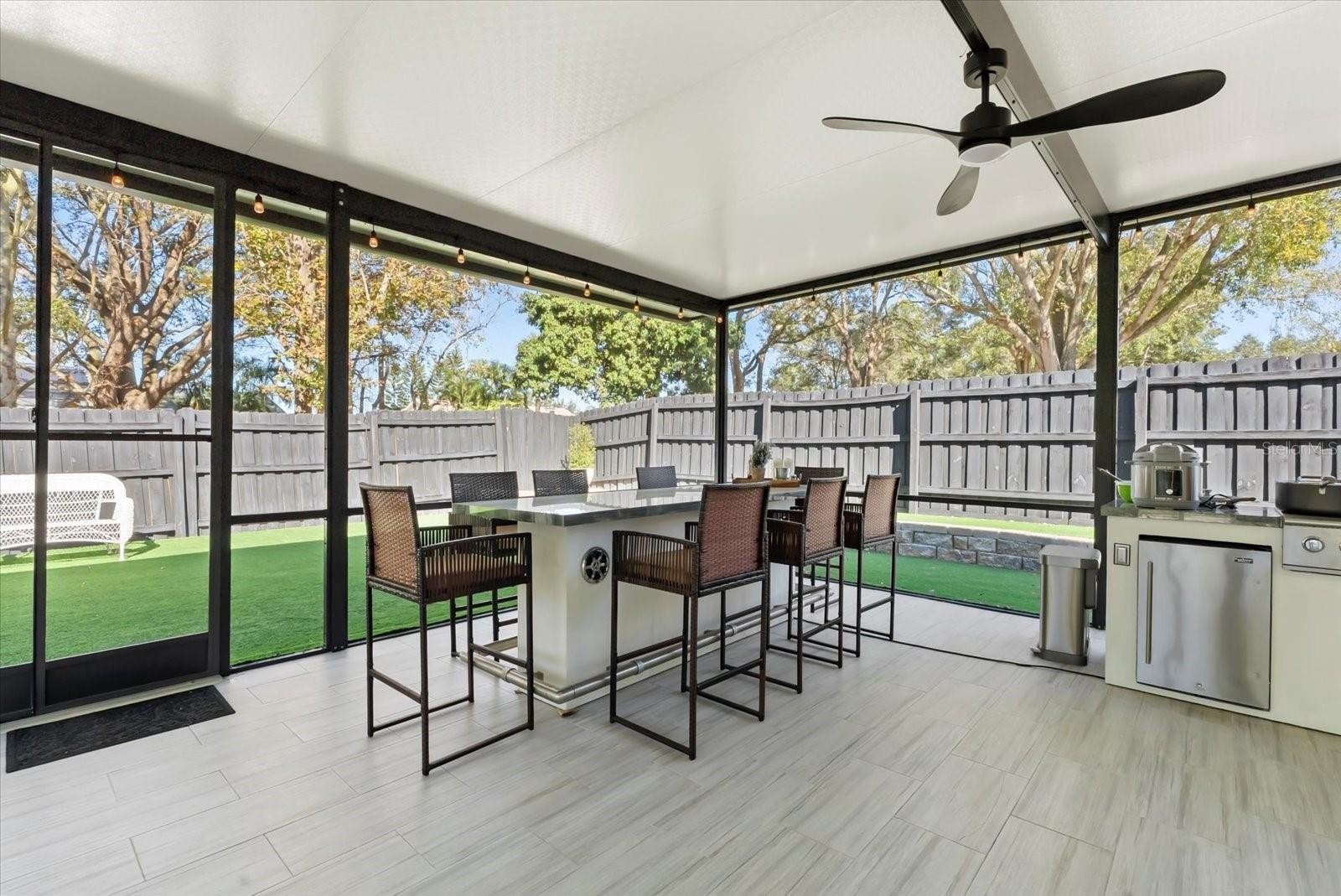 The standout feature is the outdoor living space, showcasing an extended patio and screened lanai with a full outdoor kitchen, perfect for entertaining. The fully fenced backyard is upgraded with high-end synthetic turf and professional exterior lighting throughout, creating a sleek, low-maintenance retreat. Sold fully furnished, and conveniently located near the West Orange Trail, SR-429, and top medical hubs. Don't wait and schedule your private tour of this Winter Garden gem today!