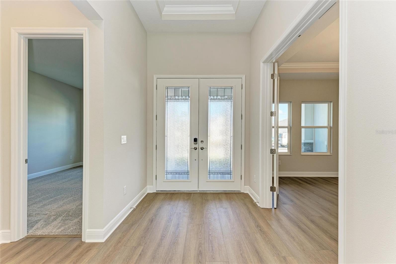 Expertly curated finishes bring a coastal elegance to this 3,276 square foot residence. The heart of the home showcases Maddox Painted Harbor cabinetry with a refined wood style texture, beautifully paired with premium Calacatta Laza MSI Quartz countertops. Warm Nutmeg flooring flows throughout the main areas, grounding the space with a natural and inviting feel.