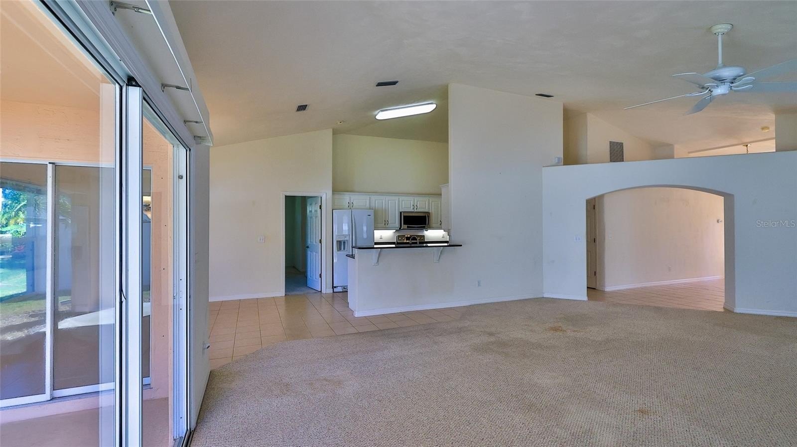 Located within the gated Sabal Creek community, this concrete block home offers a comfortable Florida lifestyle with convenient access to top-rated Port Orange schools, shopping, dining, medical facilities, and area beaches approximately 20 minutes away. The community setting and manageable lot size make the property well suited for full-time residents, retirees, or seasonal owners seeking low-maintenance living. The residence features a spacious open floor plan with generous room sizes throughout. The galley-style kitchen opens to the living and dining areas and includes solid dark granite countertops and newer Samsung appliances, including a dishwasher, double oven, microwave, washer, and dryer. The interior remains largely original, and the home is priced to reflect its current condition, presenting a timely opportunity for buyers to update flooring and finishes while securing value in a gated community. The primary suite is thoughtfully designed with a jetted tub, separate shower, water closet, and split double sinks. A professionally built safe room by Jerry Johnson adds an additional layer of security and peace of mind. Major systems include a roof replaced in 2022, hot water heater installed in 2010, and air conditioning system from 2009. Situated on a 62 x 111 lot totaling approximately .15 acres, the property offers spacing between neighboring homes while maintaining an easy-care backyard with irrigation and gutters in place. The lot does not accommodate a pool, helping keep ongoing maintenance simple. An oversized two-car garage provides ample storage and functionality. With solid concrete block construction, recent roof replacement, and pricing that reflects the original interior condition, this home represents a compelling opportunity for buyers seeking space, security, and long-term potential in one of Port Orange's established gated communities.
