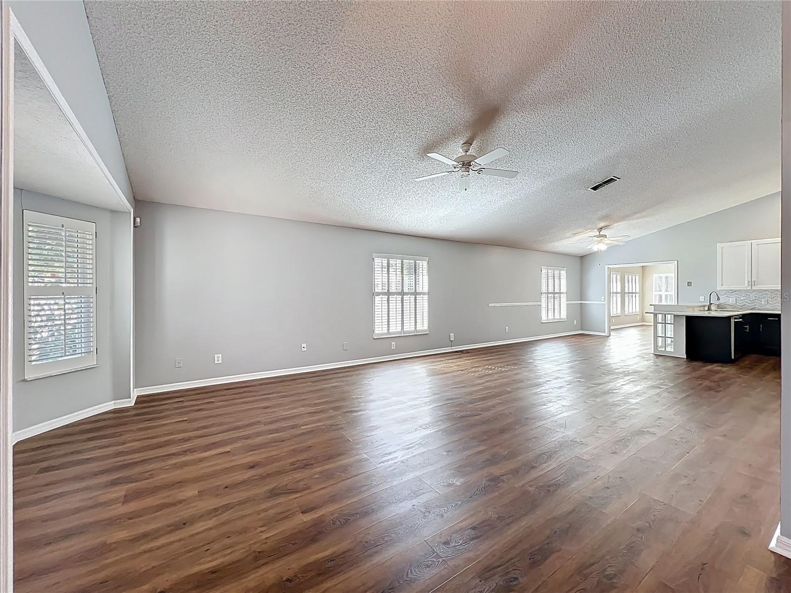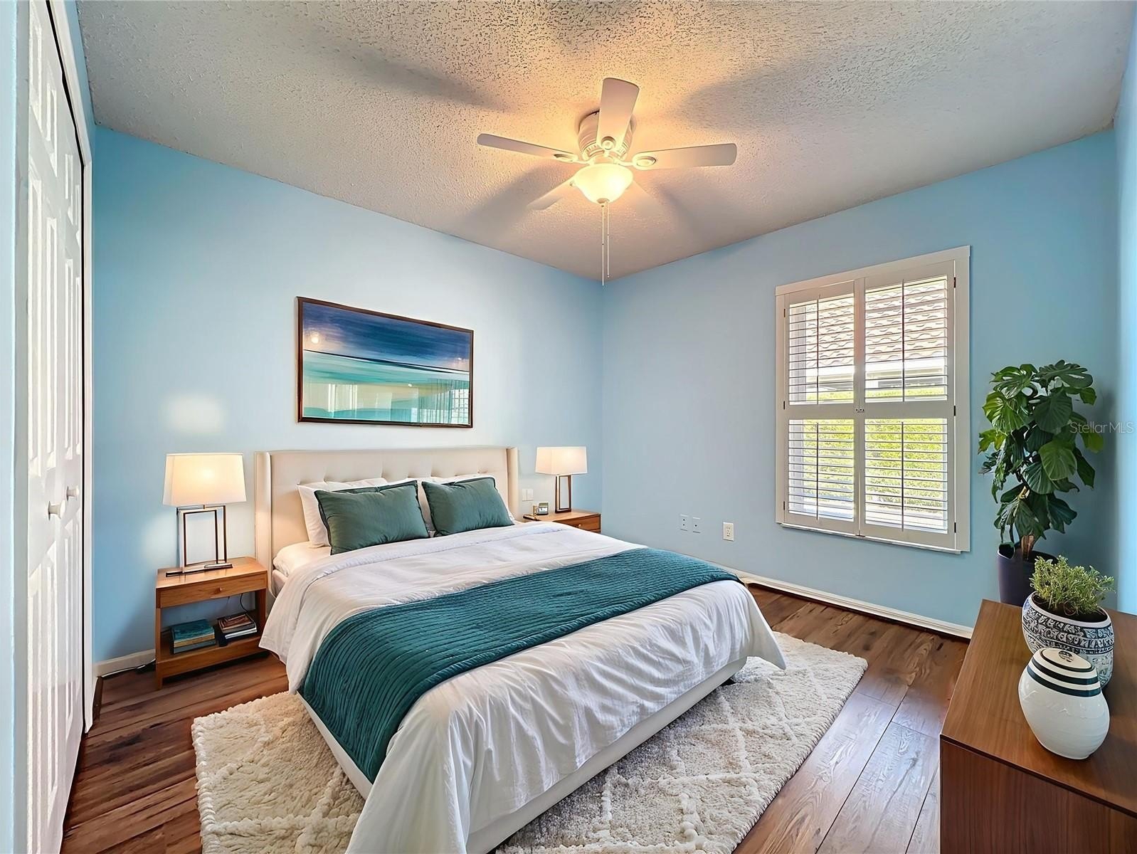 Vinyl windows throughout provide energy efficiency and low-maintenance durability, complemented by timeless plantation shutters in every room that elevate the home’s overall aesthetic. Luxury vinyl flooring runs seamlessly throughout most of the home, creating a cohesive, contemporary look that is both stylish and practical.