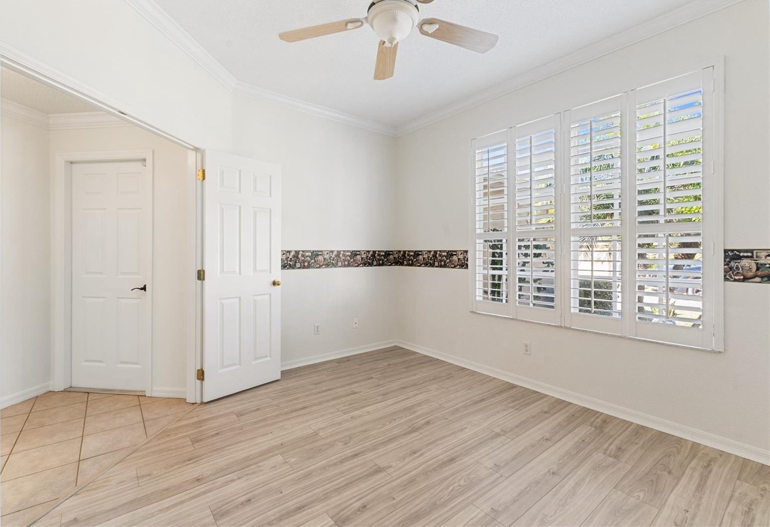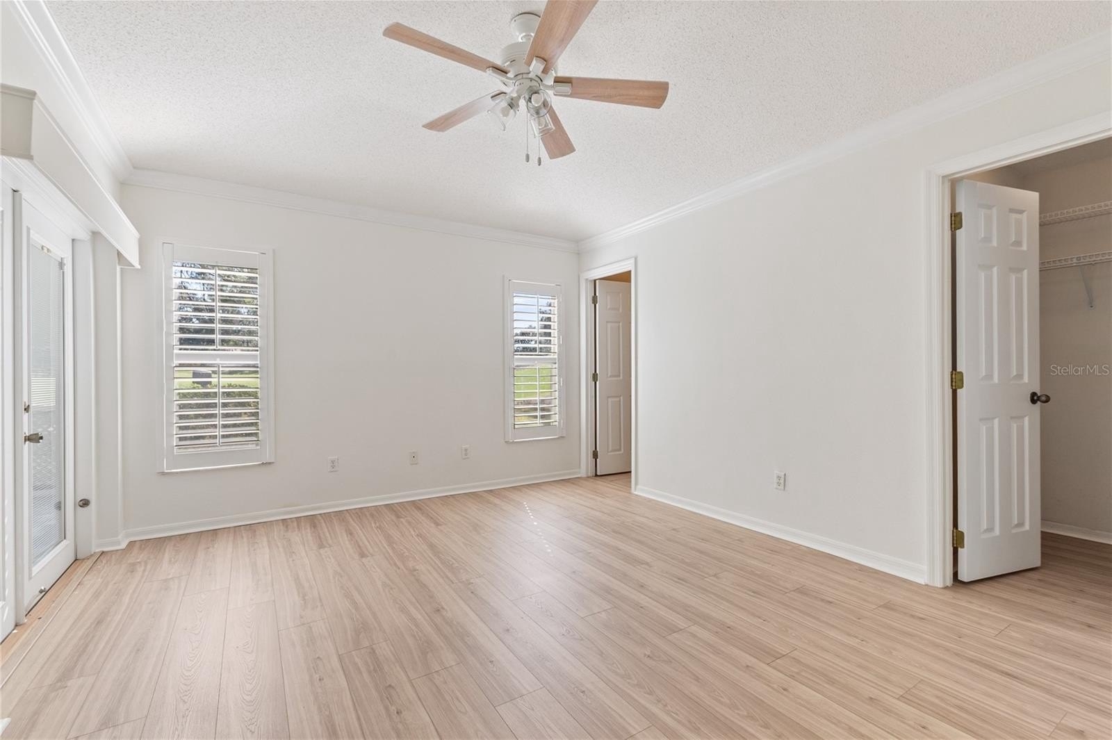 Step out back to enjoy sweeping southeast-facing golf course views from the large, tiled, screened lanai and shaded with mature trees provide cooling cover and soft morning sunlight filtering through the branches. It’s the ideal space for relaxation, entertaining, or simply enjoying the company of the neighborhood’s graceful sandhill cranes.