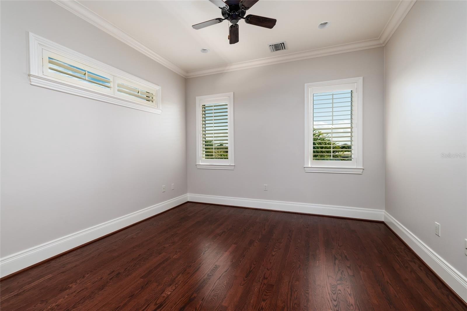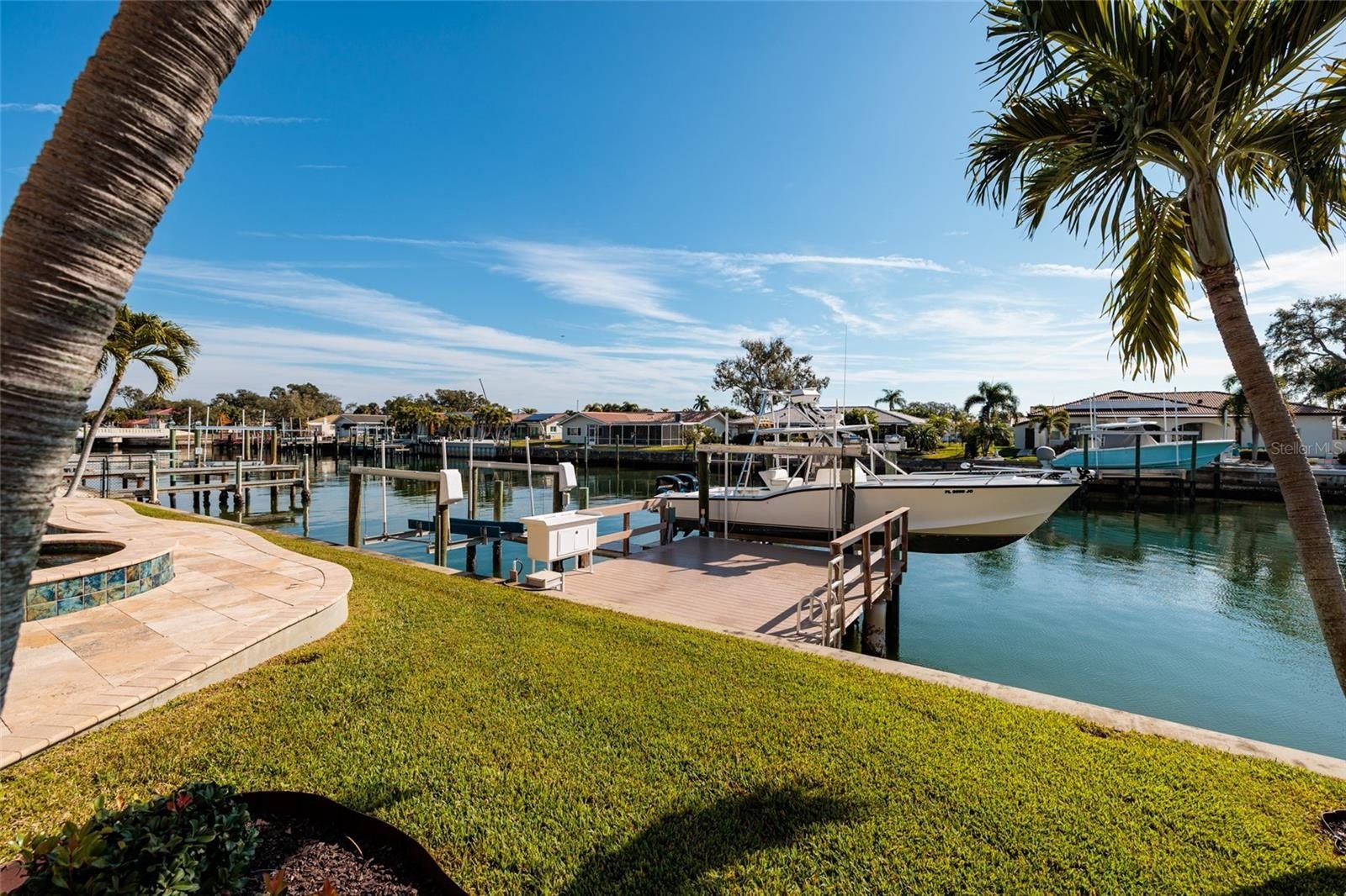 The second-floor living area opens to a balcony overlooking the water-perfect for relaxing, entertaining, or watching all of the outfdoor boating activity. The primary suite offers double-door entry, custom built-ins, and a spa-style bath with jetted tub and dual vanities.