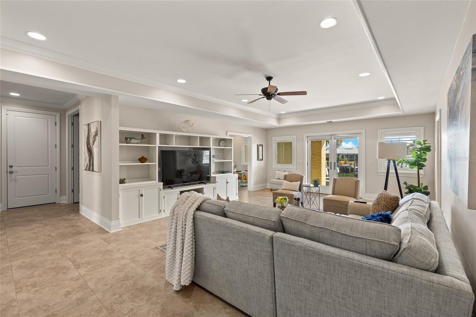 The ground floor is designed to be lived in, offering expansive living space that flows directly to the pool, patio, and dock—ideal for waterfront living and boating with two boat lifts (6K and 12K pounds) and protected canal access to open Tampa Bay. This level also works beautifully for multi-generational living, featuring two bedrooms, two full baths, a living room, and two separate bonus rooms.